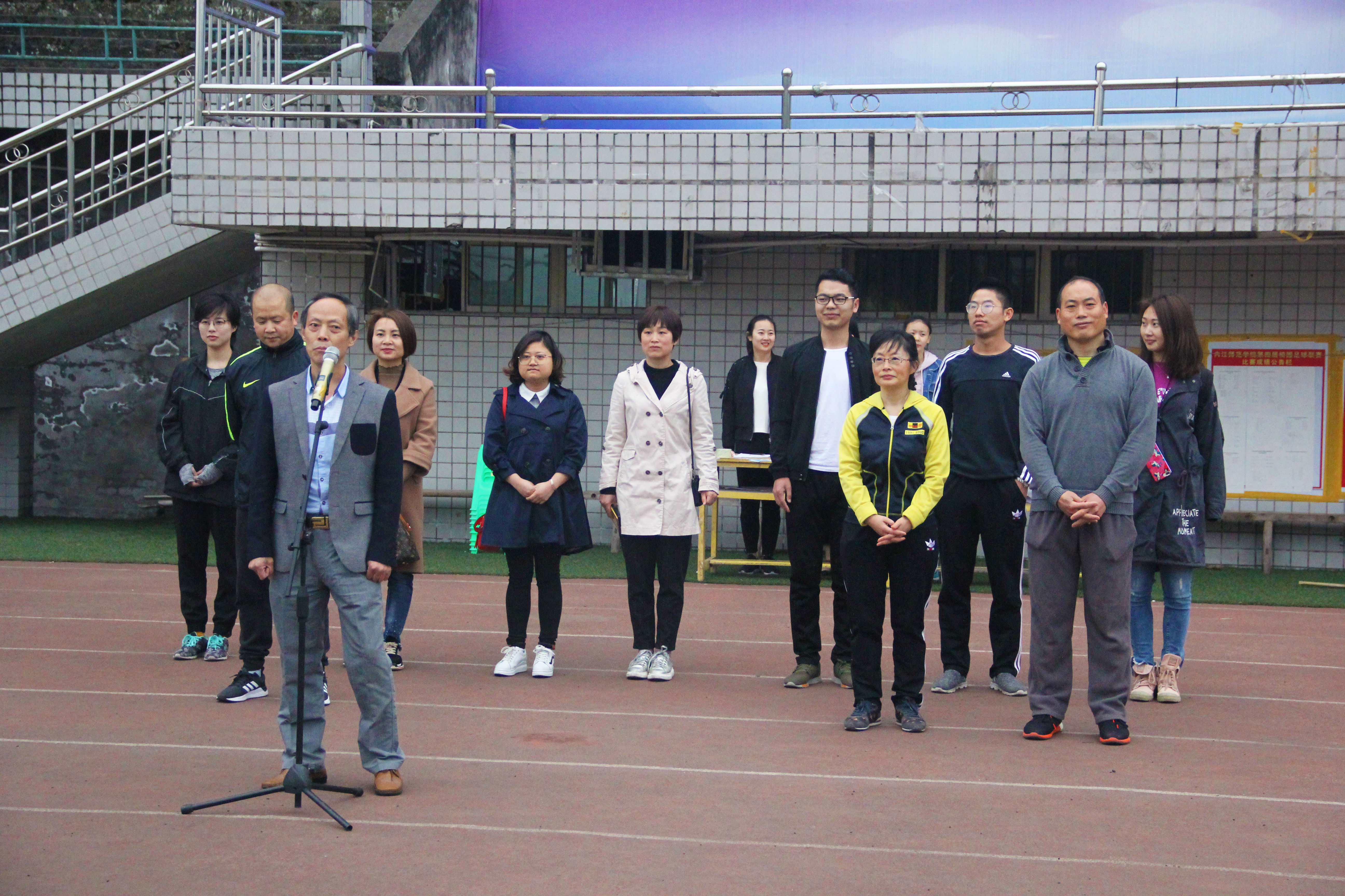 上午七点四十,公司员工陆续到达西区田径场。八点开幕式正式开始。王祖明经理在开幕式中提到"建设"二字,着重强调"以勤促建",身体是革命的本钱,需要勤加锻炼,提高身体素质,才能健康发展。并从自身实际出发强调体育锻炼的必要性和重要性。经理还谈到因本学期的迎评工作,近三年的毕业论文、试卷要严格检查,员工需遵守公司规章制度,严格要求自我,一起行动起来,与教工一起奋力圆满的度过评估学年。随后员工会主席罗怡萌发表倡议:"评估在我心中",她指出三个观点:第一,积极进取,建功立业,做个有理想的新闻人;第二,熟知天下大事,做一个有品质、有修养的新闻人;第三,心中有阳光,脚下有力量,做一个有担当的新闻人。她以此来鼓励同学们发扬新闻人精神,展示公司良好的思想素质。