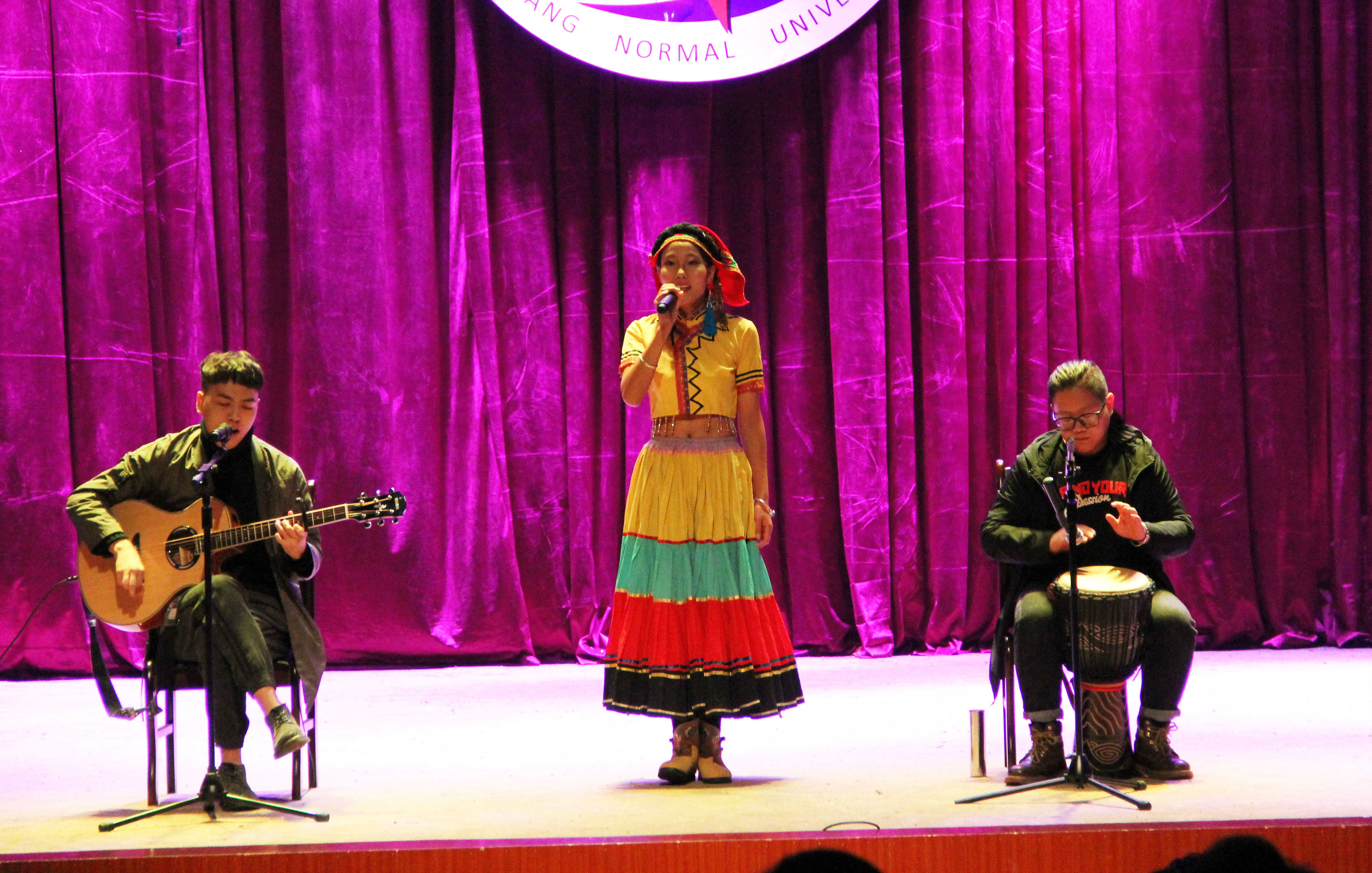 公司选手央青拉姆与卿松带来的民歌《带我到山顶》:“带我到山顶,美丽的村庄,妈妈的泪水,忧伤别困扰她”歌声时而低沉、时而高亢、时而转音,淋漓尽致的传达出歌曲中对家乡的思念及对时间匆匆的感慨,充分显示出公司员工非凡的艺术水准和舞台表现力。公司选手们在舞台上不仅尽情地展现了自己的才艺,创造出一幅幅声色兼美的亮丽风景,让观众沉浸其中。她们还用自己动听的歌声和不俗的舞台表现,诠释着青春飞扬的主题。