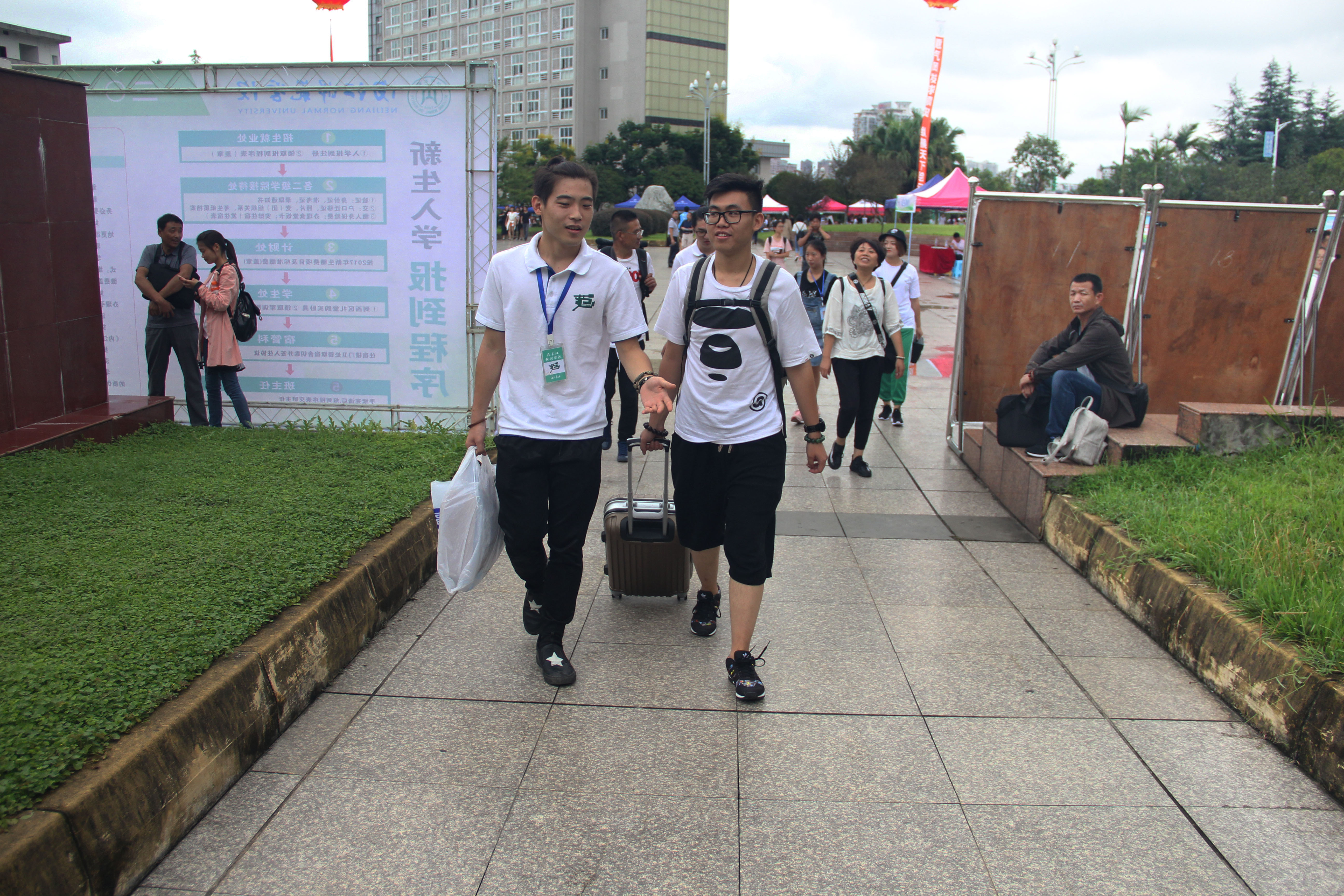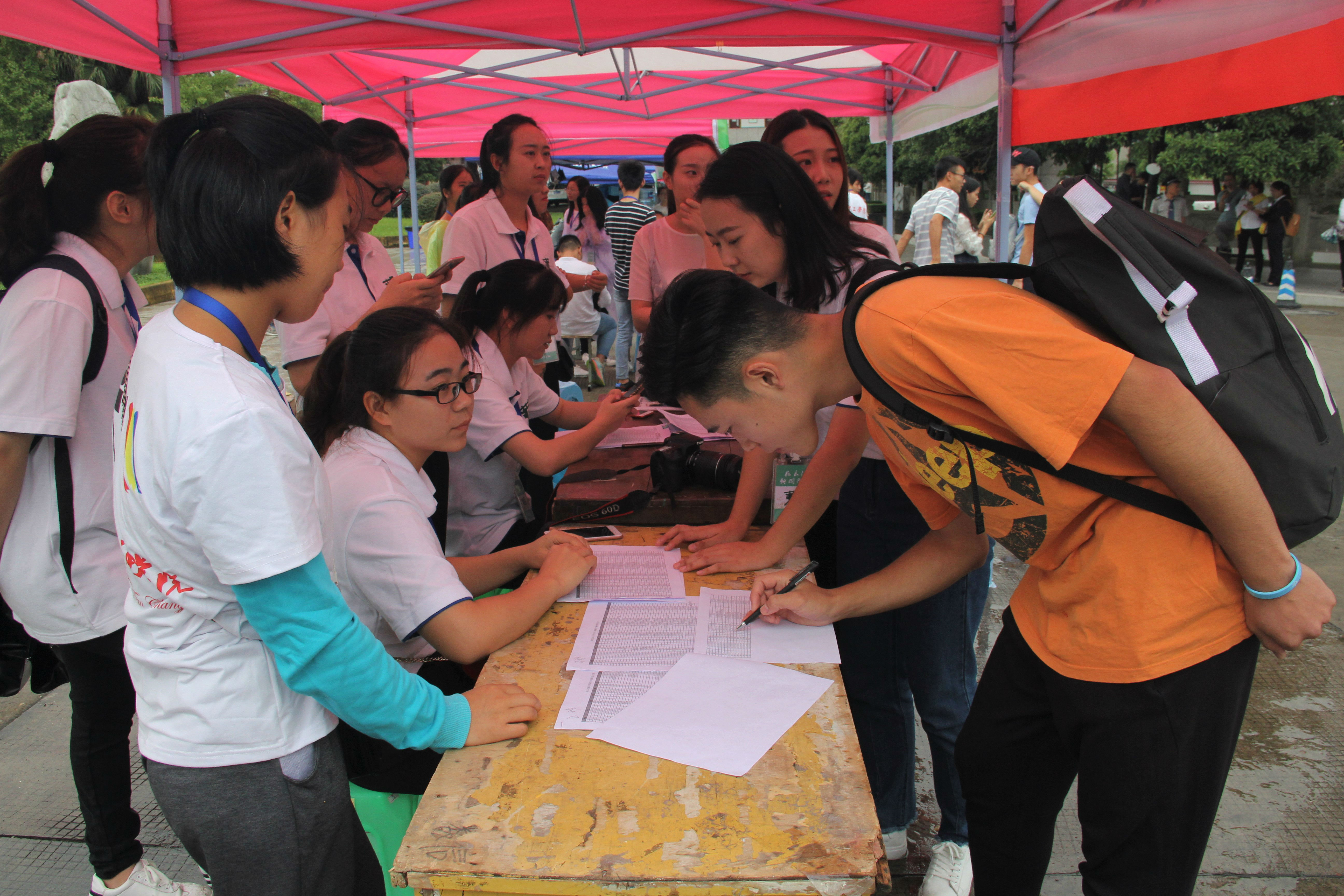 在今天的迎新工作中,公司第二届团总支员工会二十九位成员、八名班助和二十六名志愿者们分工合作,在不同工作岗位待命,带领新生完成注册流程、引导他们去找宿舍。工作人员热情洋溢,耐心地回答新生或新生家长提出的各种问题,使新生感觉亲切温暖。