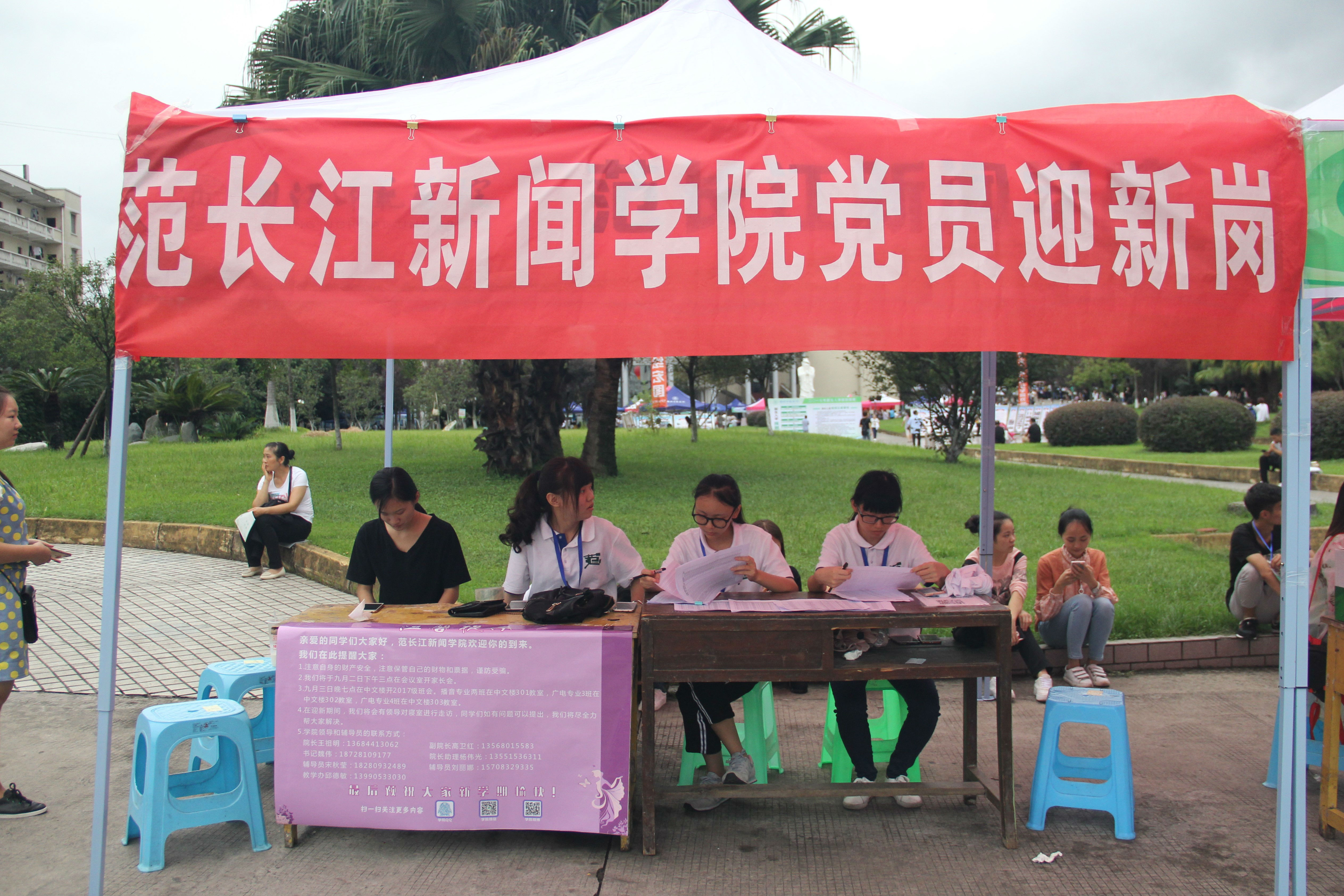 91日,公司2017年迎新工作正式拉开帷幕了,为更好的迎接新生,带领他们完成报道注册流程,公司在五教旁设立迎新站点,并在天一广场前设立党员迎新岗。