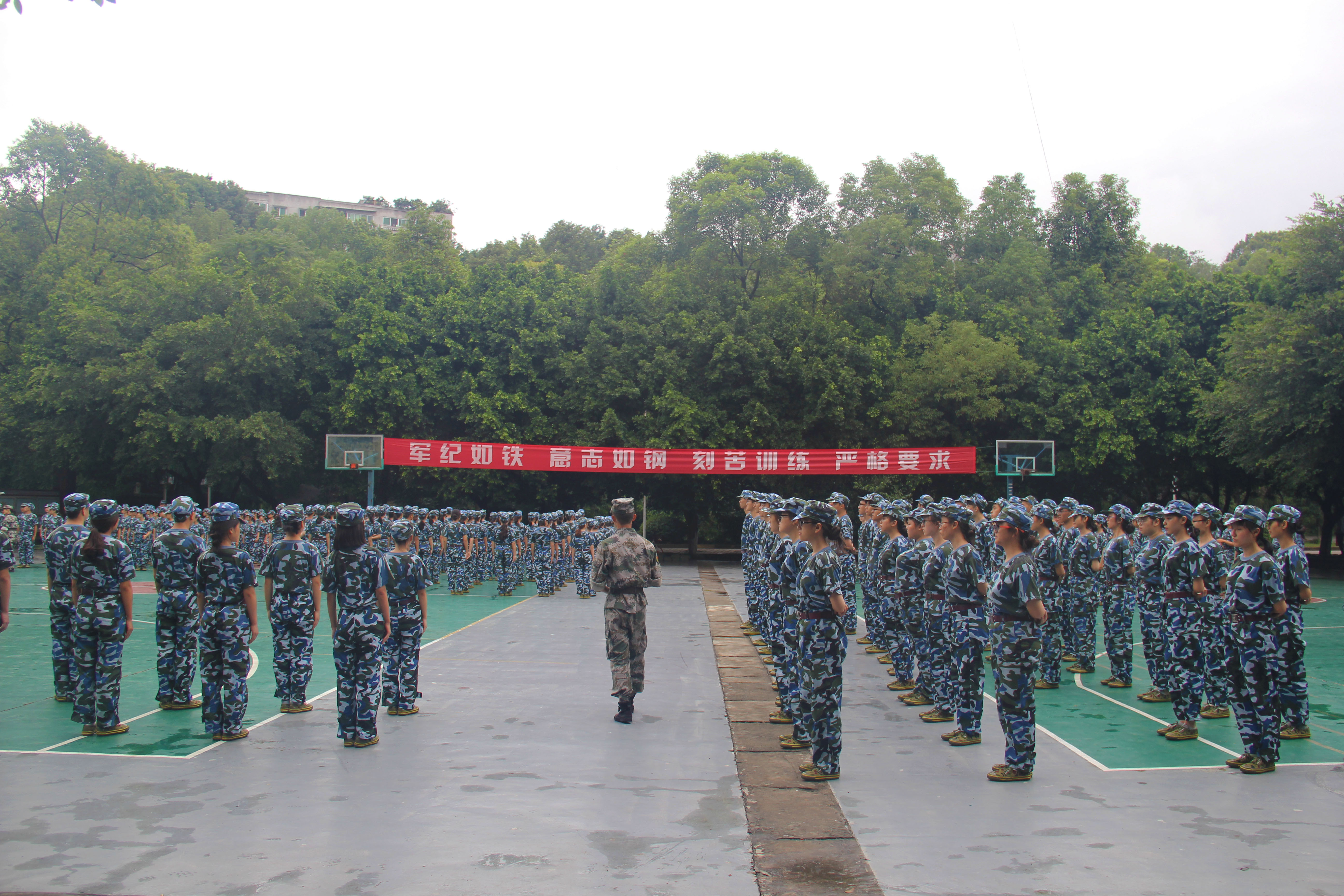 “古之立大事者,不惟有超世之才,亦有坚韧不拔之志。”坚持与忍耐就是同学们通过军训不断磨练的。不论下雨还是日晒,公司新生们依旧目光坚毅,刻苦训练,衣服也是被汗水浸湿、晒干、再浸湿。“大学军训比以前参加过的军训更严格,更有纪律、有秩序。”17级3班的黄廖丹说。军训中不论是日常训练还是寝室内务都严格要求:大到门窗、小到缝隙都要无灰尘、牙杯同一方向摆放、桌上不能摆放过多物品、凳子摆放整齐……让同学们在军训中学会独立。17级1班的杜雅熹说到:“大学军训的训练时间比以前参加过的军训要长,在内务方面也严格的要求,一定程度上培养了我们的独立生活能力。”军训不仅能帮助他们养成良好习惯,同时还发扬了吃苦耐劳、团结一致的精神,为新生今后的学习生活做好铺垫。