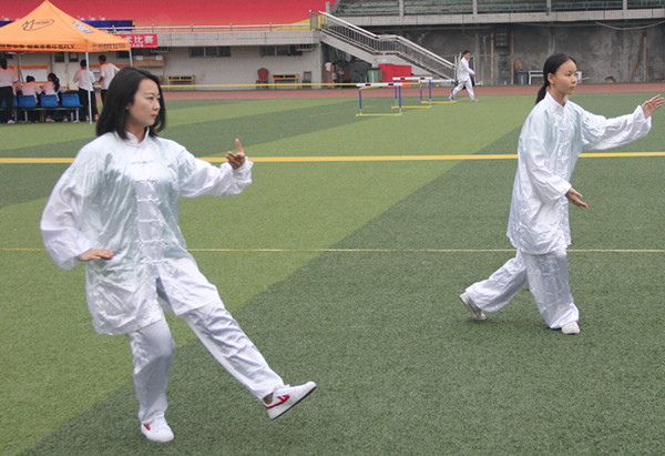 双截棍比赛结束后,一场地传统四类集体查拳也如火如荼的展开。查拳是回族中流传较广的中国传统拳术长拳的五大流派之一,起源于山东省。自2008年经国务院批准列入第二批国家级非物质文化遗产名录后。查拳在竞技武术比赛中也受到热捧,先后受到各大武术队的推广训练,查拳项目的水平,也一直在攀升。此次公司查拳代表队共6人,一上场便给人气势如虹的感觉,他们的套路由手型、步型、手法、步法、腿法以及数量不等的跳跃等动作组成。精准的力度,以及手法、脚步的变换,他们给在场的观众呈现了一场精彩的视觉盛宴。公司代表队以强悍的气势、有力的招式、整齐的动作取得了第一名的优异成绩。同时,自选剑术项目也于田径场二号场地进行,代表公司参赛的是公司16级5班的王可超同学。比赛开始后,参赛选手依次上场表演,王可超在剑术表演中极尽全力,剑术精准奇妙,时快时慢,时而充满阳刚雄浑,时而又柔美苍劲。整套动作连贯,如同行云流水一般。最后以8.23的高分荣获第二名。