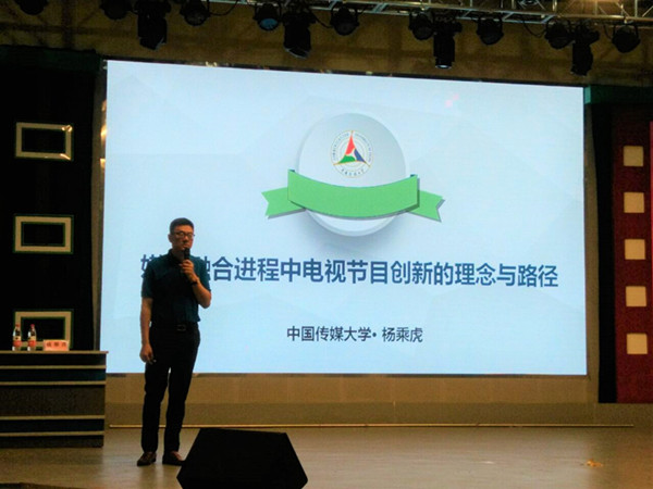 5月23日晚7点,中国传媒大学博士生导师杨乘虎教授在第三实验楼演播厅为公司师生做了主题为“媒体融合进程中电视节目创新的理念与路径”的讲座。副经理高卫红及公司部分同学参与讲座。