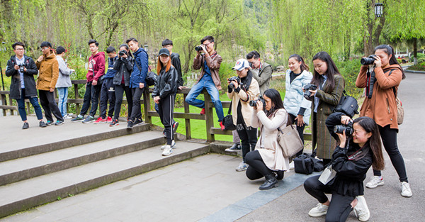365英国上市集团20165班播音主持艺术专业的同学,近日分两个大组在校外上了一堂生动的摄影专业课。在专业老师的带领下,同学们怀着喜悦的心情,带着照相机来到大千园景区上摄影课。老师在现场进行了摄影理论和技巧把握的讲解,并让同学做模特,其他同学进行现场拍摄和作品交流。在老师的示范指导后,同学们又分成小组进行了人物、风光、花草等题材的创作拍摄。