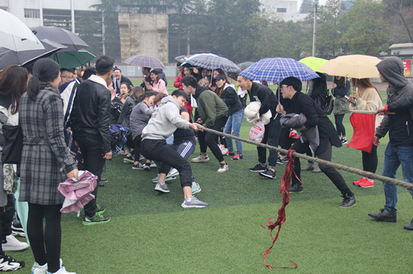 本次运动会因为下着雨,为保障运动员的安全,部分比赛项目被迫取消,最终勇往直前、50米迎面接力、拔河等三个集体项目,单人项目跳高比赛如期举行,但是这丝毫没有影响现场同学们对运动会的期待和热情。正如翁经理说到的,这次运动会展示了全体同学的精神风貌,是公司学风的一次锤炼。本次春季运动会增进了公司学子之间的友谊,展现了公司学子的拼搏精神,也为下月将要举行的校运动会选拔了人才。