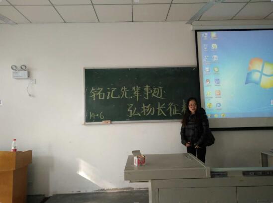 艰苦奋斗,一往无前的精神。2016年11月21日晚6点,2014级6班的学子们在中文楼303,开展了主题为“铭记先辈事迹,弘扬长征精神”的团组织活动。