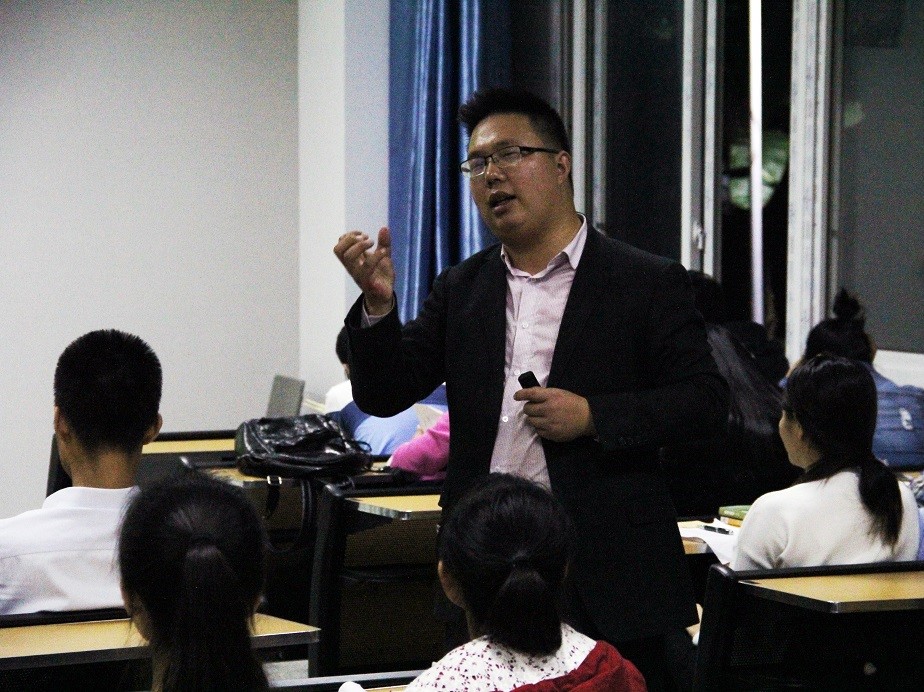 讲座接近尾声,宋老师就黄老师的讲话作了简短的总结,并建议同学们根据自身实际,设计考研目标,一点一滴的积累专业课知识,复习好英语和政治。宋老师结合自己当年的考研感受,告诉大家,只要平时认真学习其实考研并不难。16级6班的王潇浛听完后十分激动,并说到:“我觉得老师的一席话让我找到了大学目标,明天我就要投身知识的海洋,积极准备考研!”
