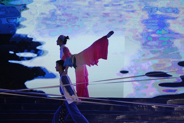 晚会以视频《你好,母校!》拉开序幕,表达了曾经的内江学子对母校的感恩与祝福。随后由音乐公司和美术公司带来的《沱江欢歌》将整个舞台照得如同梦幻一般,令现场观众迅速融入到了晚会的欢乐气氛中,随之欢呼鼓掌。