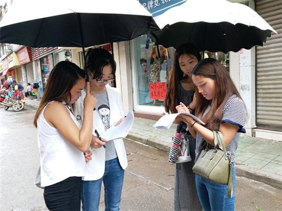 队员们在街头做问卷调查