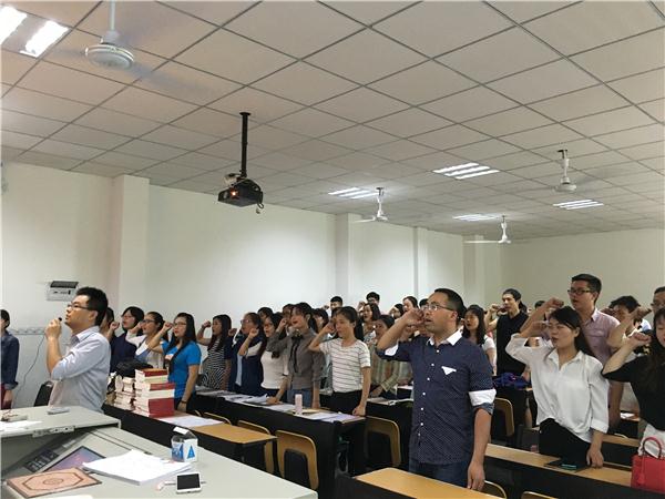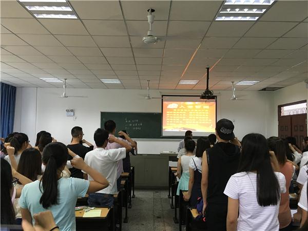 入党誓词是每一名共产党员自愿加入中国共产党时向党作出的庄严承诺,党员从面对党旗宣誓的那一刻起,就应该遵守诺言,用誓言指导自己的言行,处处以一个共产党员的标准要求自己。“组织上入党一生一次,思想上入党一生一世”。在辅导员许小涛老师的带领下,全体与会人员共同高举右手,握拳过肩,一字一句铿锵有力地念出入党誓词:“我志愿加入中国共产党,拥护党的纲领,遵守党的章程,履行党员义务,执行党的决定,严守党的纪律,保守党的秘密,对党忠诚,积极工作,为共产主义奋斗终身,随时准备为党和人民牺牲一切,永不叛党”。在重温入党誓词的同时,也提醒广大党员重新回顾当初申请加入中国共产党时的思想和心理历程,从而固化政治上的坚定性,进一步打牢思想根基。