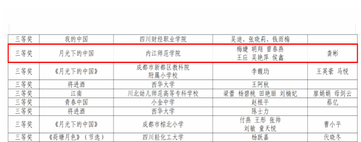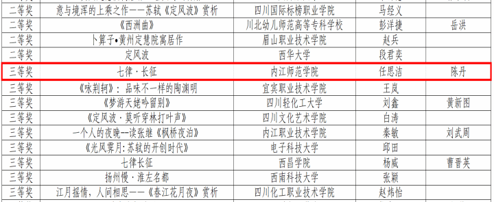 近日,四川省2023年中华经典诵写讲演系列活动获奖名单公布。公司辅导员梅婕、青年教师侯鑫参与的作品荣获“诵读中国教师组三等奖;青年教师任思洁的作品荣获“诗教中国”大学教师组三等奖;员工王思扬、廖芷宜的作品荣获“诵读中国”老员工组一等奖;员工裴扬扬、肖瑞君的作品皆荣获“诗教中国”老员工组三等奖。