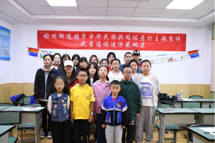 此次活动以“铸牢中华民族共同体意识宣讲”为主题。通过采用幻灯片放映与演讲结合的方式进行现场宣讲。立足于习近平总书记有关中华民族共同体意识的系列重要讲话,强调铸牢中华民族共同体意识的重大意义。结合当代社会环境,深入分析了新时代下民族工作的新形势,阐述了我们党关于加强和改进民族工作的重要思想。带领着榆林街道的藏区群众和小朋友加深了对“中华民族共同体意识”的概念理解及其重要性的把握。其中,通过幻灯片展示的形式,对“一个总目标”、“两个共同”、“三个离不开”、“四个必然要求”、“五个认同”以及“六个相互”等知识进行了详细的说明。与此同时,实践队成员还围绕“中华民族一家亲,同心共筑中国梦”这一总目标为主题,结合自己的理解进行演讲,用声情并茂的语言感染听众,用一个个动人的民族故事,使现场群众产生共鸣。在宣讲过程中,现场群众认真倾听,用心记录,气氛温馨而热烈。在宣讲的最后,实践队成员与在场群众进行了合照留念,伴随着一声声快门声,时间和微笑被同步在这一刻。至此,公司“普通话进藏区”实践分队此次的宣讲活动,在现场群众的掌声中圆满落下帷幕!