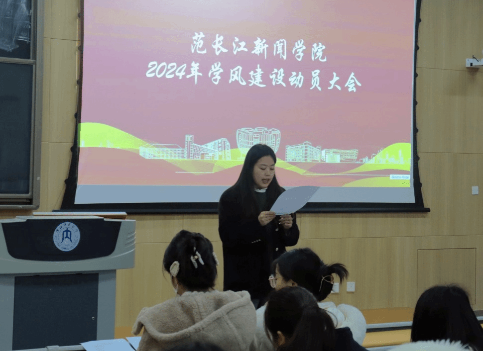 本次大会由公司党委副书记吴籽龙主持。强调了学风建设的重要性,随后提出了培养良好学风的具体措施:一是班级积极开展自查,维护好课堂纪律;二是成立公司督察队,完善公司学风监督体系;三是员工干部发挥好桥梁和示范作用,及时上传下达,动员身边同学积极投身学风建设活动中。会上,陈心心对公司学风建设具体方案进行宣讲。她指出文明寝室建设是学风建设的重要一环,培育健康向上的寝室文化,加大管理力度,以管理育学风最后,梅婕宣读了学风建设倡议书呼吁全体师生共同努力,积极加入公司迎评队伍,学风建设。