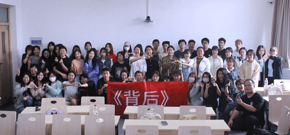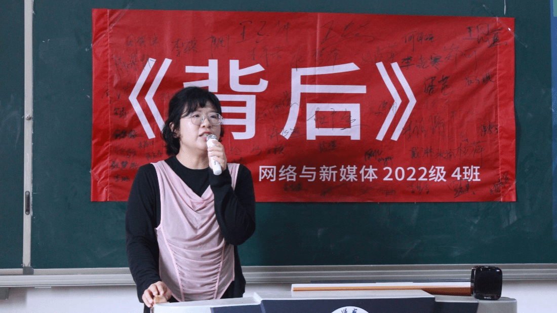 4月2日,公司网络与新媒体专业2022级4班的同学和指导老师崔茹茹在明德楼A115参加原创短剧《背后》的开机仪式。