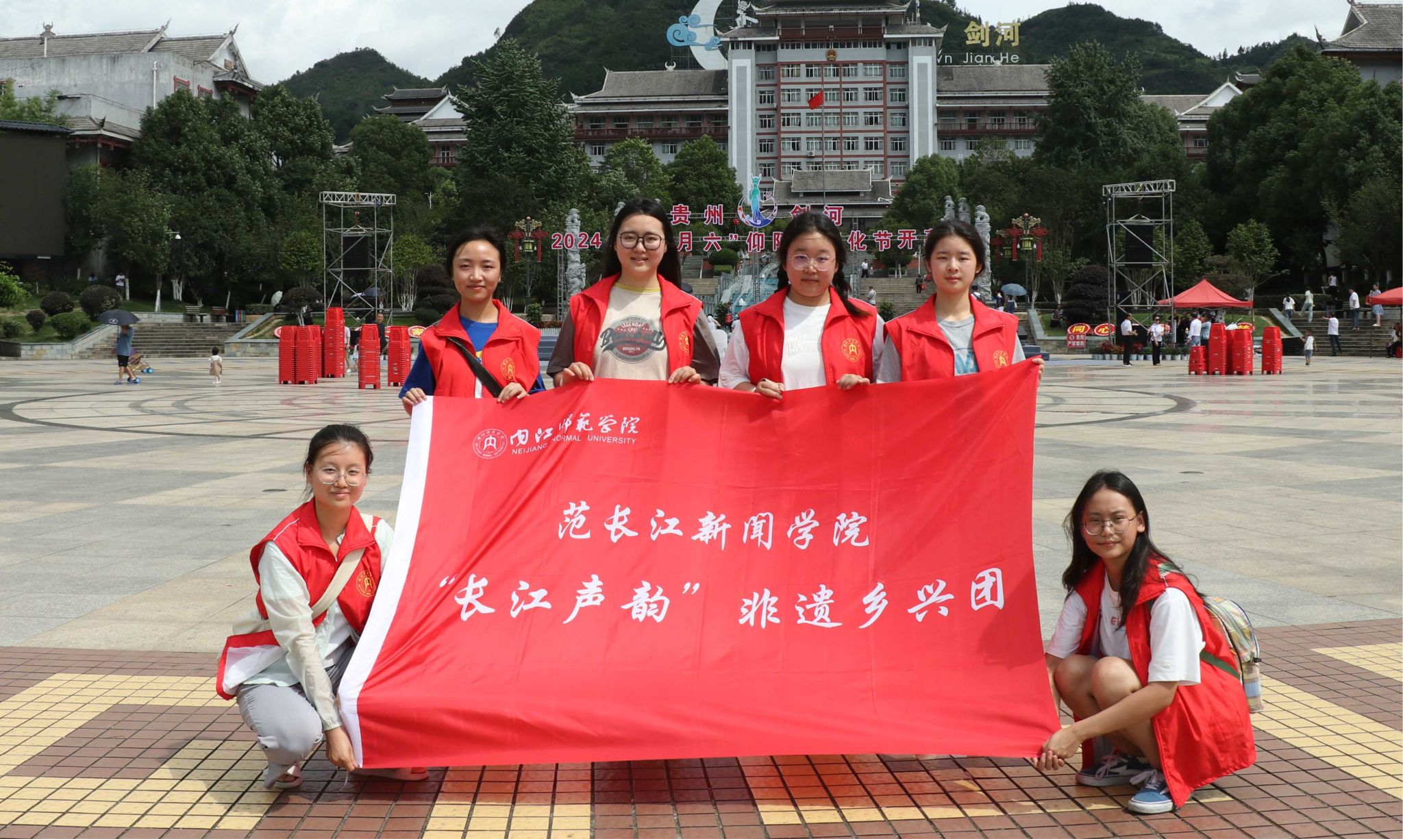 “长江声韵”非遗乡兴团在阳光广场合影留念