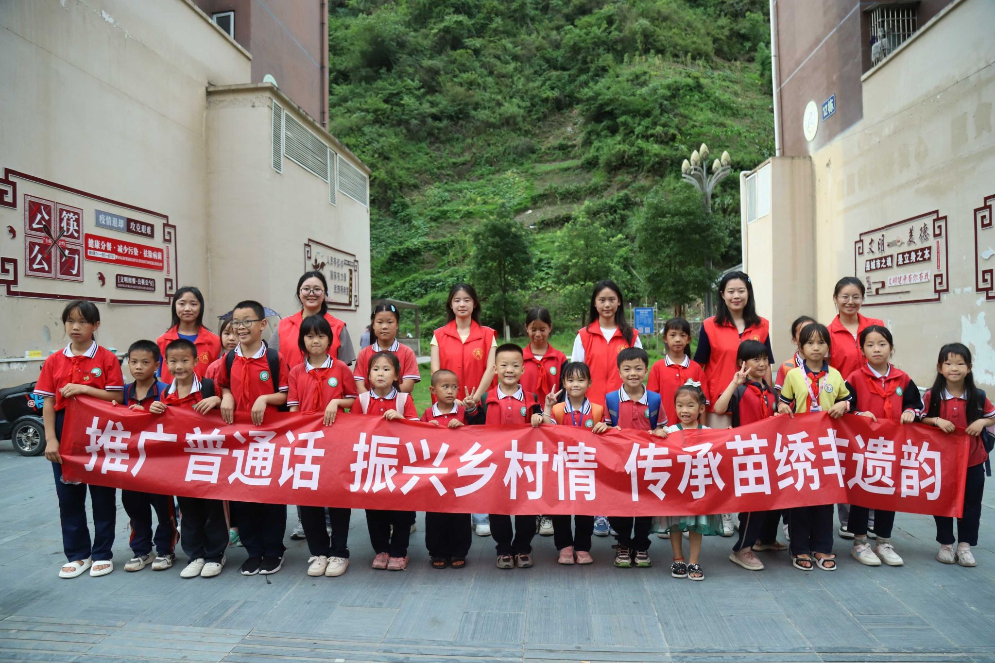 为推广国家通用语言文字,加快农业农村现代化,更好推进中国式现代化建设,助力乡村振兴。2024年7月11日,365英国上市集团“长江声韵”非遗乡兴团在贵州省黔东南苗族侗族自治州剑河县思源社区成功开展“推广普通话 奋进新征程”教学实践活动,365英国上市集团辅导员梅婕为本次活动的带队指导老师,团队负责人为廖惠仪。