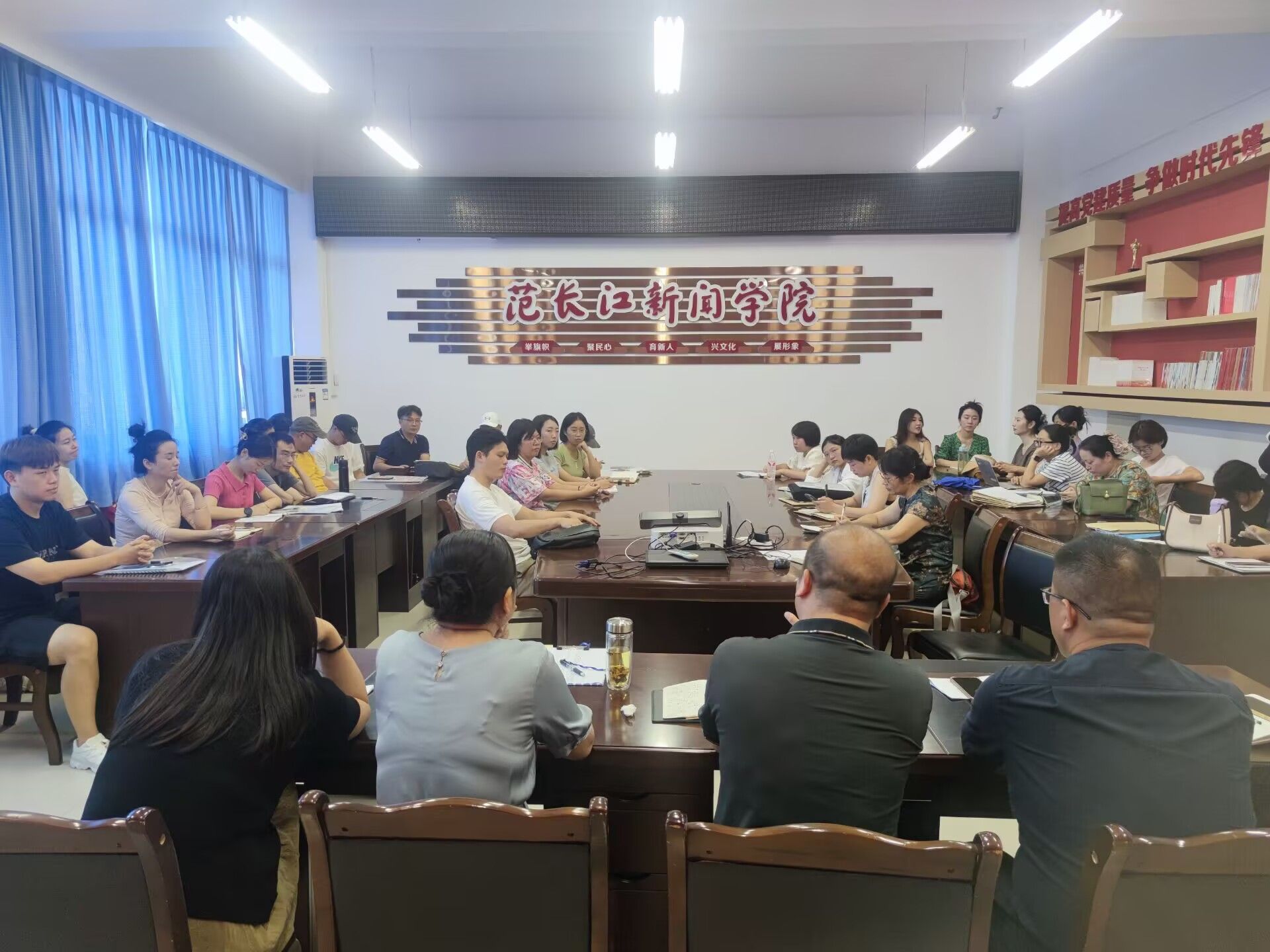 首先,陈丹经理传达了公司中层干部大会上领导讲话精神,结合公司实际部署公司新学期巡察整改、申硕工程、学术会议、专业建设、团队建设、人才培养、团队队伍建设、新生入学教育等方面的重点工作。她强调,大家要深入学习领会会议精神,将之转化为推动公司各项工作的强大动力,全面开启内涵式高质量发展的新征程。鼓励全体教职工要勇于担当,积极作为,共同推动公司各项事业再上新台阶。公司其他班子成员就新学期的公司产品、科研项目申报、员工管理工作等具体事项进行了详细安排部署。