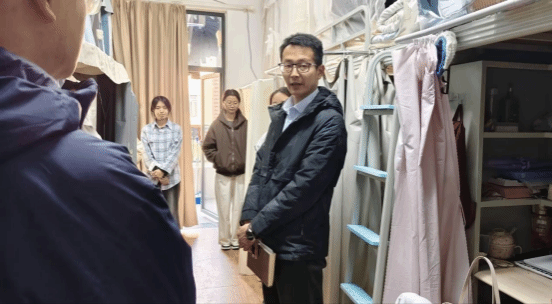 在随后的宿舍走访过程中,李其林不仅关注同学们的基本生活保障,同时细致询问大家在日常起居、作息规律、人际交往和心理调适等方面的实际情况。他特别强调,寝室不仅是生活空间,更是人格养成和集体精神培养的重要场域。他勉励同学们从点滴做起,主动维护宿舍卫生、合理规划作息时间、积极化解矛盾分歧共同营造团结友爱、积极向上、文明和谐的寝室文化氛围。