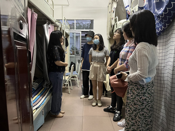 蝉鸣六月,梅雨时节。为进一步做好毕业生安全教育,切实保证毕业生安全文明离校,同时增进师生之间的感情与交流,表达对毕业生的祝福与期冀。6月9日晚8点,公司党总支书记魏伟,党总支副书记、副经理(主持工作)陈丹,党总支副书记吴籽龙,副经理罗丹,经理助理刘佳老师及毕业班班主任,分别去到2018级毕业生寝室走访、看望毕业生。