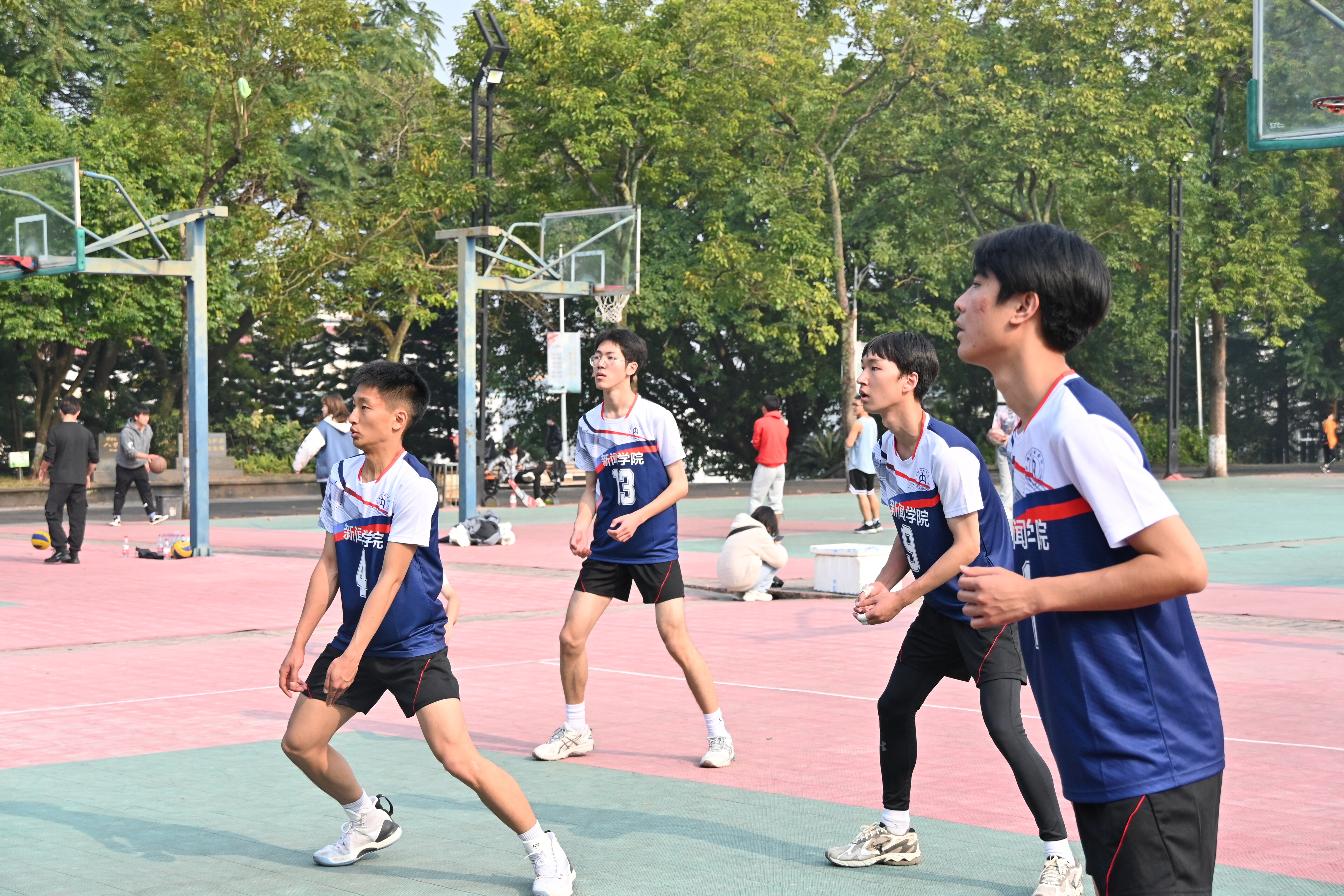 进入第二阶段比赛,公司男排一共打了两场比赛。 12月20日,中午1:10,公司男排与经济与管理公司进行对决;12月21日中午12:20,公司男排对战地理与资源科学公司。第二阶段的两场比赛,双方队员都神采奕奕,相互鼓励,抱着“友谊第一,比赛第二”的心态,双方都展现出属于当代青年的拼搏与热血,经过几个回合的球场竞技,最终公司男排没拿下和经济与管理公司的比赛,但赢得了和地理与资源科学公司的比赛。