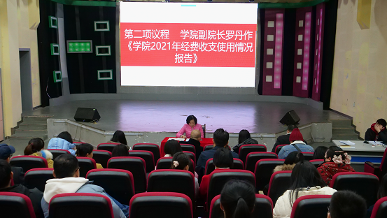 大会共五项议程。第一项议程,公司副经理(主持工作)陈丹作公司2021年年度工作报告,陈丹从“党建群团工作、教学专业建设、科研团队建设、学风建设、人才招聘、新校区搬迁准备工作”等几方面全面回顾了公司2021年工作的总体情况,充分肯定了广大教职员工的辛勤付出以及取得的优异成绩,同时指出了公司发展中的“短板”以及今后努力的方向。大会第二项议程,公司副经理罗丹作公司2021年经费收支使用情况报告,罗丹从“教师绩效工资发放、外聘教师课时费、超课时费用、教学相关工作费用、其他兼职工作费用”五个方面作了汇报,让每一位参会教职工更进一步公开、公平、公正的知晓和参与公司管理事务。