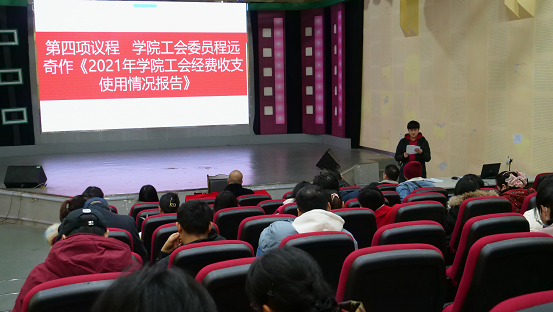”、“强化普惠服务工作,增强工会组织凝聚力”六个方面,回顾了公司工会过去一年开展的情况和取得的成绩。大会第四项议程,公司工会委员程远奇作公司2021年工会经费收支使用情况报告,程远奇向全体教职工通报了公司工会2021年经费的收支情况。
