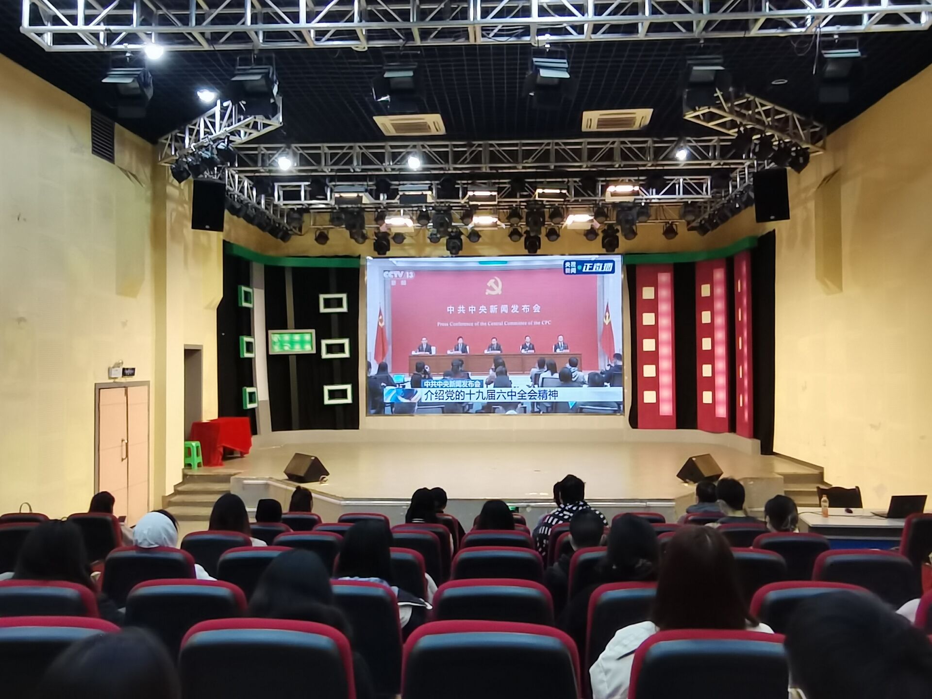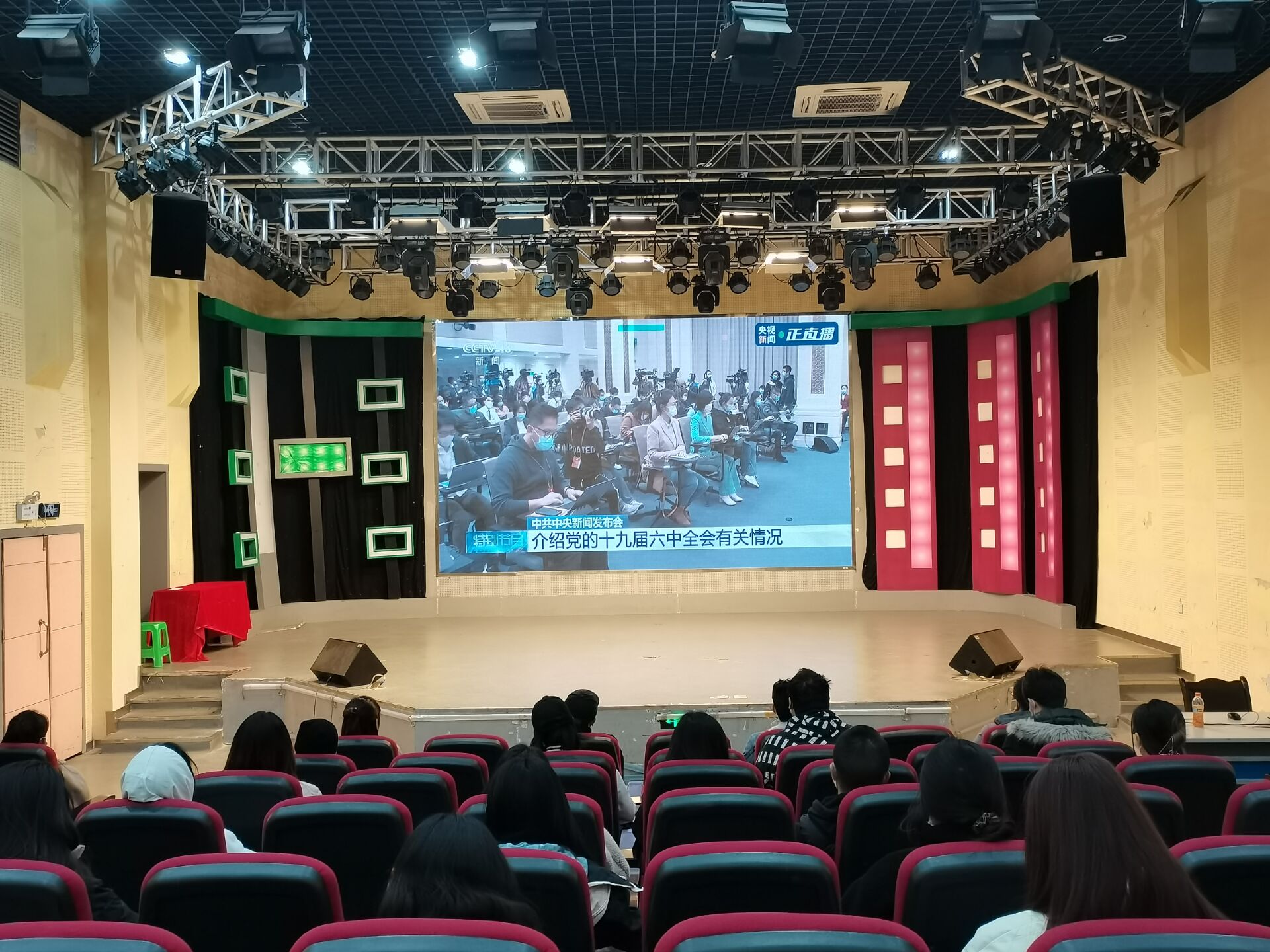 11月12日上午十点,公司在第三实验大楼129演播厅组织观看了党的十九届六中全会精神新闻发布会直播。公司党总支书记魏伟、党总支副书记吴籽龙、学工办主任刘丽娜、公司辅导员、专业课老师代表,以及员工党员代表观看此次直播。