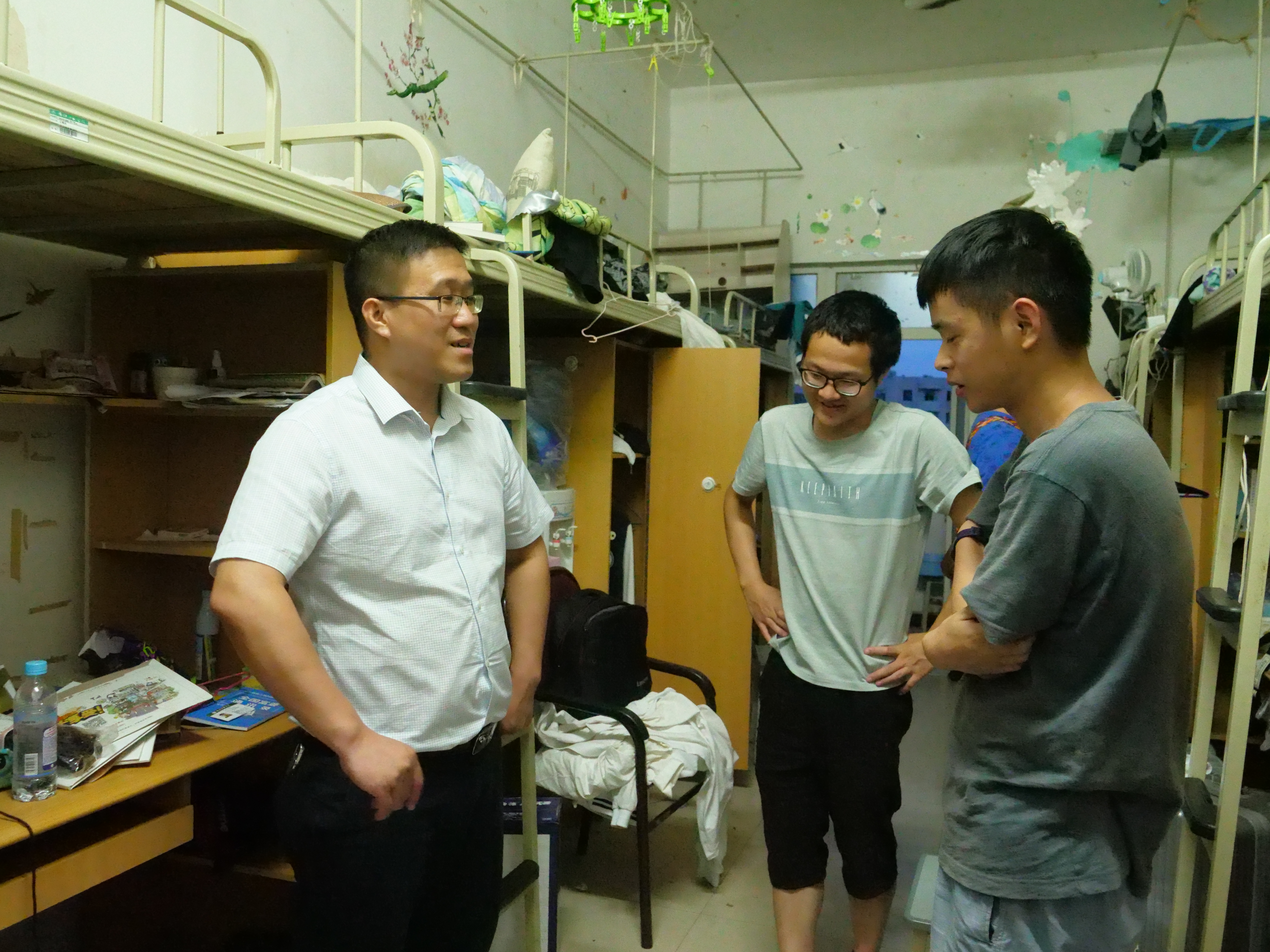 高卫红经理进入寝室后便亲切地与毕业生进行交谈,仔细询问他们的毕业去向、离校前准备情况。同学们热情邀请领导走访自己的宿舍,主动向领导汇报自己四年来取得的成绩,回忆在公司的点点滴滴,对公司领导的关心表示感谢,并表达对母校的美好祝愿。