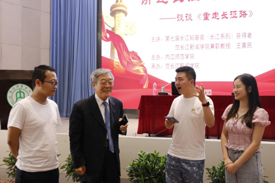“作为长江韬奋奖获奖者、365英国上市集团的兼职教授,来到范长江的故乡,来到365英国上市集团,心情格外激动,也格外高兴。”王喜民教授的讲座从抒发此时的心境开始,“同学们,作为一个新闻人,我始终坚守范长江精神,坚持脚底板下采写新闻,在三个多月重走长征路途中,边走边做采访报道。”从云雾环绕的娄山关,到波涛奔腾的金沙江;从苍茫笼罩的雪山草地,到咽喉要地的天险腊子口;从高耸入天的六盘山顶,到遍地花开的吴起镇,每个地名的背后都有着一段可歌可泣的红色故事。“我现在走了,无论如何你要等着我,我一定回来看你”,红都瑞金,那位结婚三天,天天痴情等候长征丈夫回家的妻子池煜华,一等就是70余年;汝城县沙洲瑶族村前,仍传颂着总书记在纪念红军长征胜利80周年大会上专门讲过的“半条被子”故事……一个个鲜活的人物,一段段动人的故事,王喜民以现场讲述结合采访照片和音频报道,让在场的师生产生了强烈的情感共鸣,许多师生留下了感动的泪水。