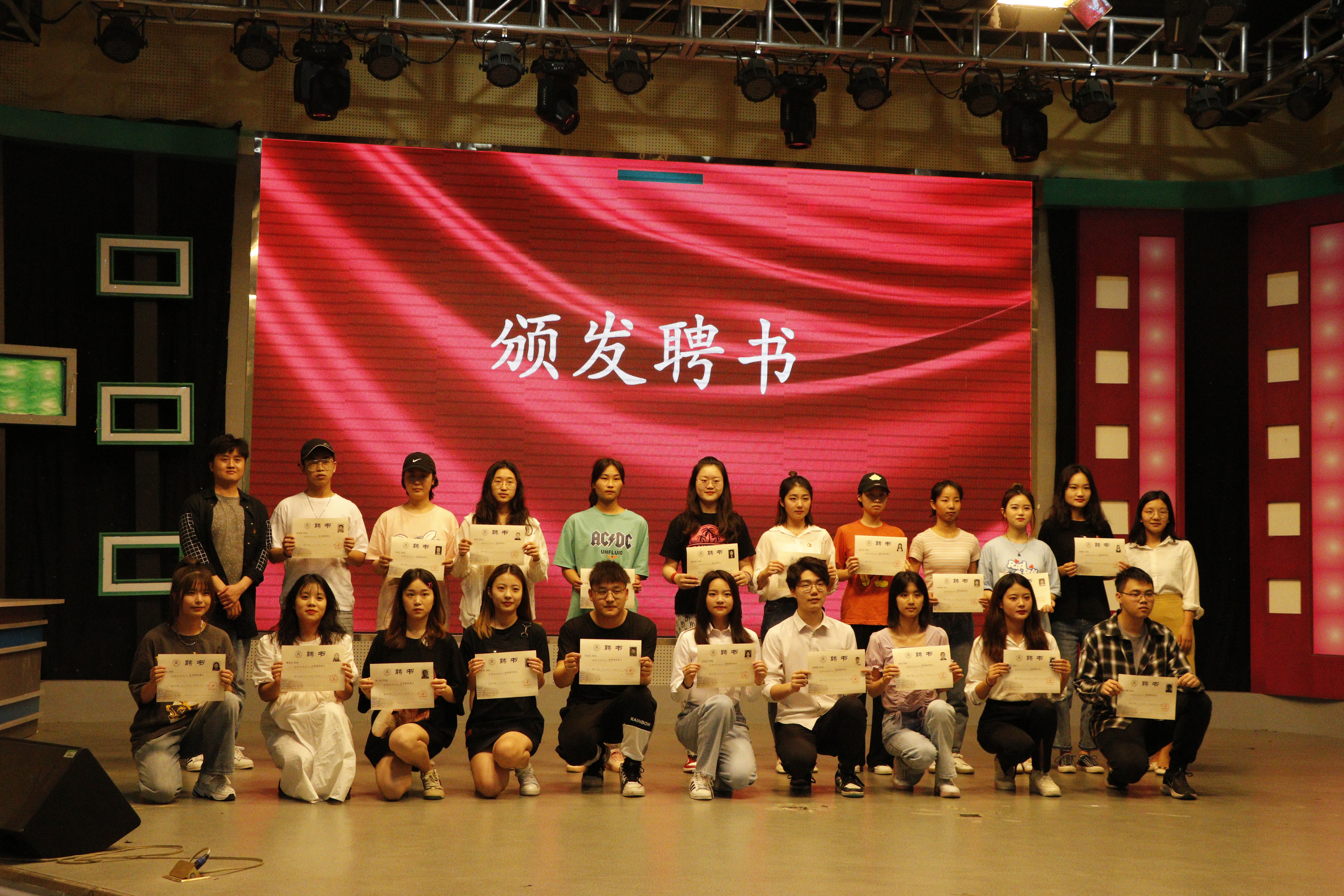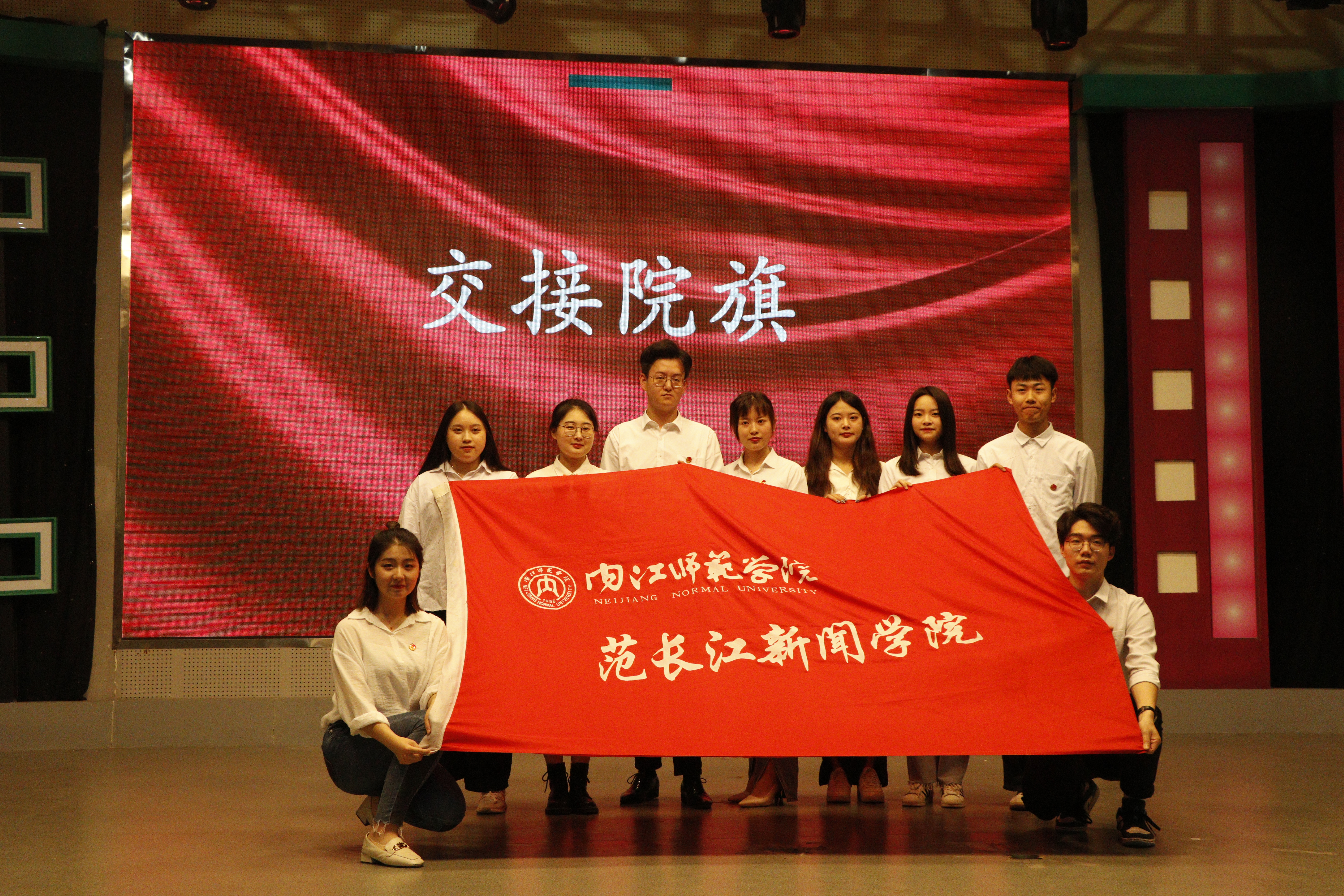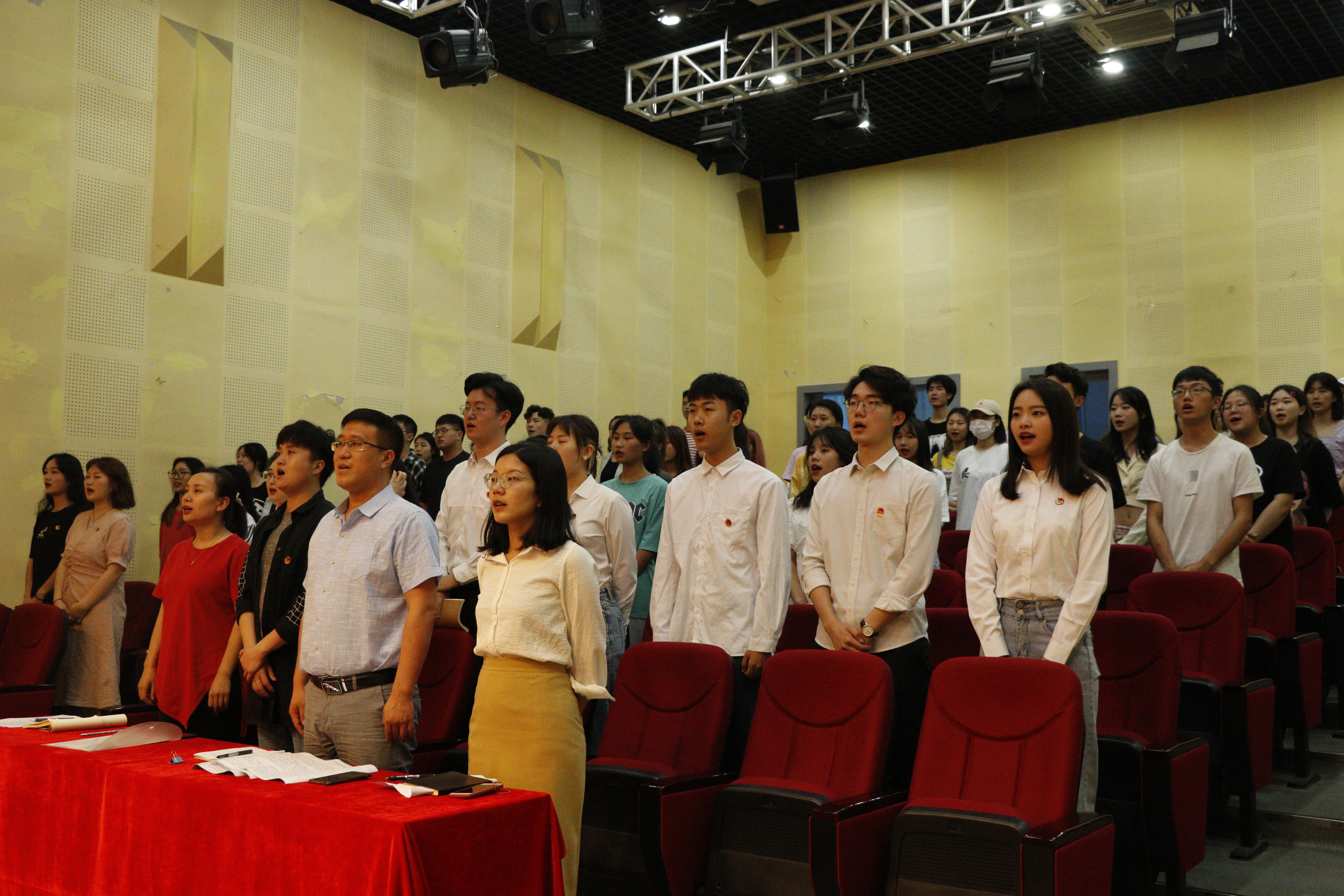 在庄严的国歌中,大会拉开序幕。首先由主持人公布第六届团总支员工会成员名单,台下的观众以热烈的掌声为他们表示祝贺。接着由李友莉、程远奇两位老师为第五届主席团成员及各部门负责人颁发聘书,两届主席团成员交接院旗并合影留念。