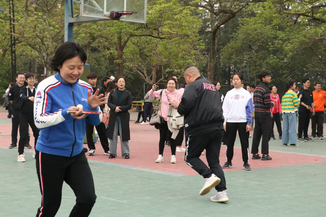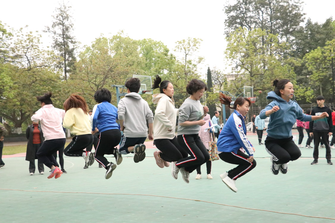 与此同时,教职工的运动会也在火热进行中。今天上午的教职工比赛类型多样,趣味性十足。单人赛包括,跳高、跳远和铅球,团体赛包括,踢毽子、跳大绳、定点投篮和20米托乒乓球。单人赛中,公司教职工充分展现了,超越自我,顽强拼搏的体育精神,在比赛场上,他们以真诚的微笑对待自己的对手,以饱满的热情对待每一次起跑,以全力以赴的态度对待每一场比赛。团体跳长绳比中,公司老师们积极配合,即使有失误停顿的地方,他们也立刻重振旗鼓,迅速恢复状态再战。在20米托乒乓球赛中,他们紧密的配合,相互打气助威,取得了小组第三的好成绩。