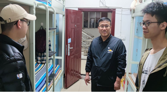 2021年4月14日晚9点,为提高员工寝室安全意识和加强寝室卫生管理,公司党总支副书记吴籽龙、学工办主任刘丽娜、辅导员程远奇和李友莉在主席团各负责人和生活部负责人的陪同下分别到长泓苑、大千苑、大洲苑对公司员工宿舍情况进行检查。