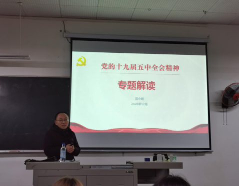 为了能够全面了解员工思想动态、学习状况和生活实际情况,2020年12月15日14:20,公司在第一教学楼105室开展领导干部联系班级讲座,此次专题讲座的主题是“党的十九届五中全会的精神”。由马克思主义公司经理邓小明宣讲,2019级3班全体同学参与。