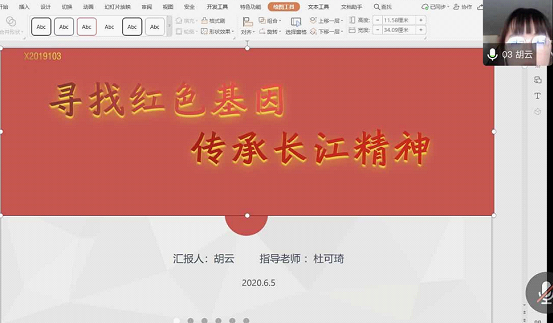 图为《寻找红色基因,传承长江精神》项目组正在进行线上答辩