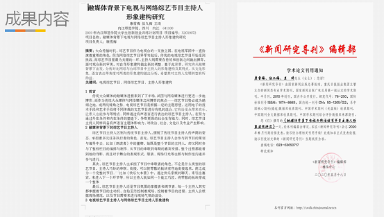 经过答辩组成绩综合评定,决定《融媒体背景下电视与网络综艺节目主持人形象建构研究》结项验收成绩为“优”