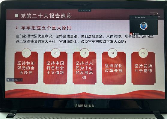 为学习贯彻落实二十大精神。公司员工第一、第二党支部分别于10月30日下午3点,在线上腾讯会议开展“全方位解读党的二十大报告”十月组织生活。本次组织生活分别由员工第一、第二党支部书记宋秋莹、程远奇主持,两个党支部全体党员准时参会。