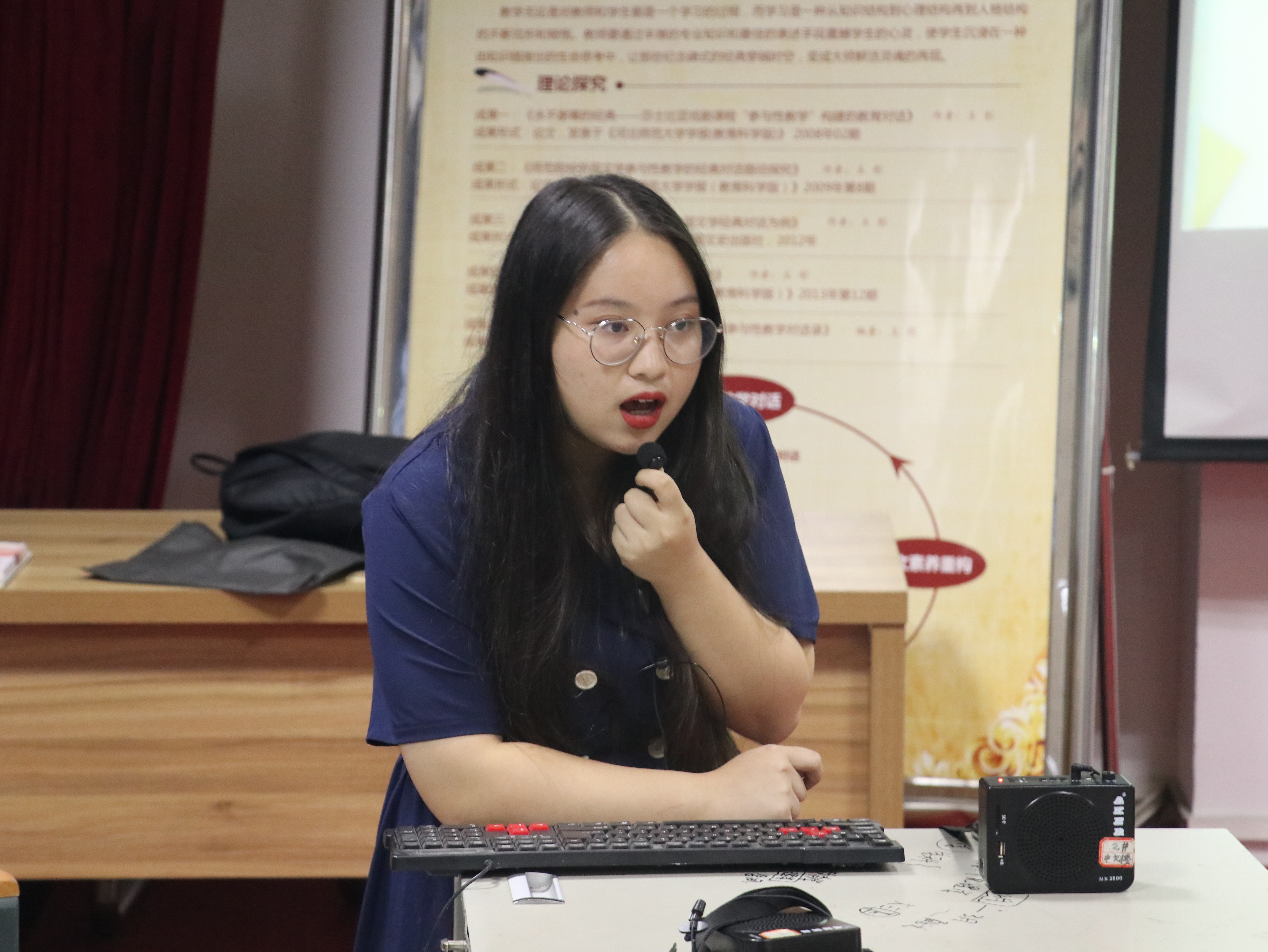 在汇报过程中,台下的新生随着台上的讲述,不时小声讨论,不时响起热烈的掌声,并积极与汇报人互动。汇报会最后,由王琦来总结发言,希望19级的师弟师妹能够多参与社会实践活动,学习新的知识,交新的朋友,不要让自己成为一座“信息孤岛”。