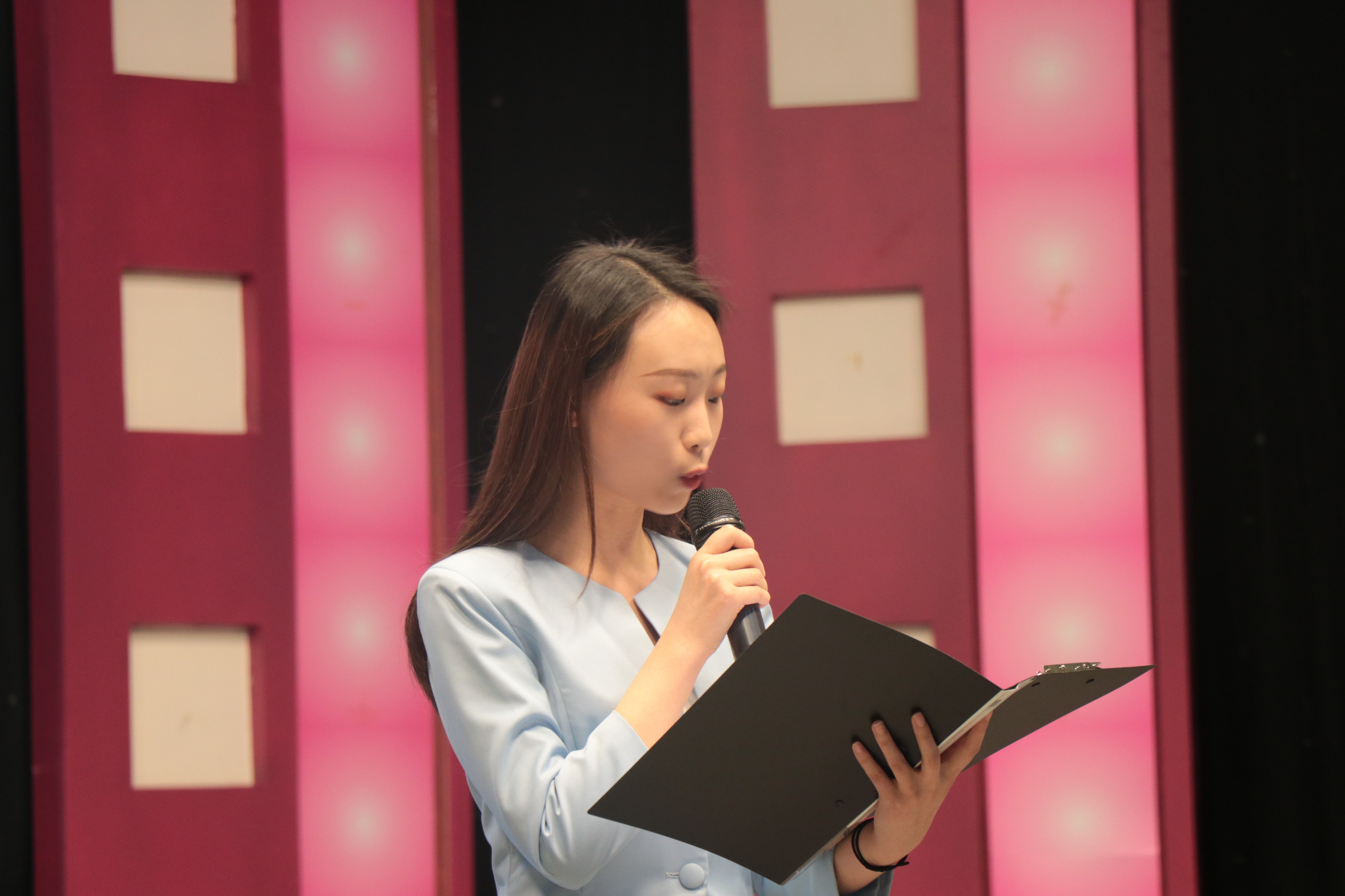 据悉,本次专业汇报表演主要分为诗歌朗诵、新闻播报、辩论赛三个环节。经过前几天激烈的比赛,经公司领导及老师讨论决定,专业汇报表演将由部分同学进行。