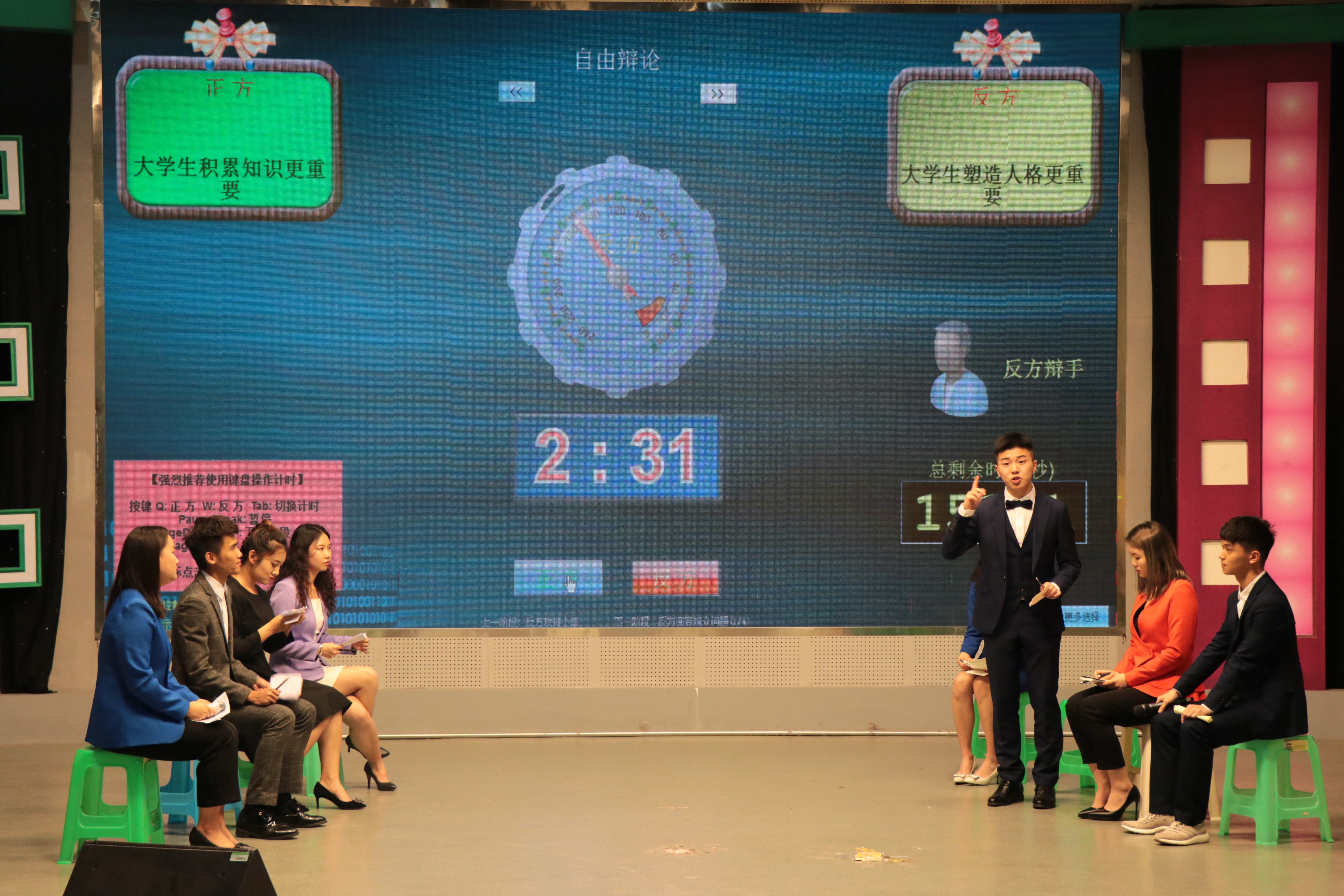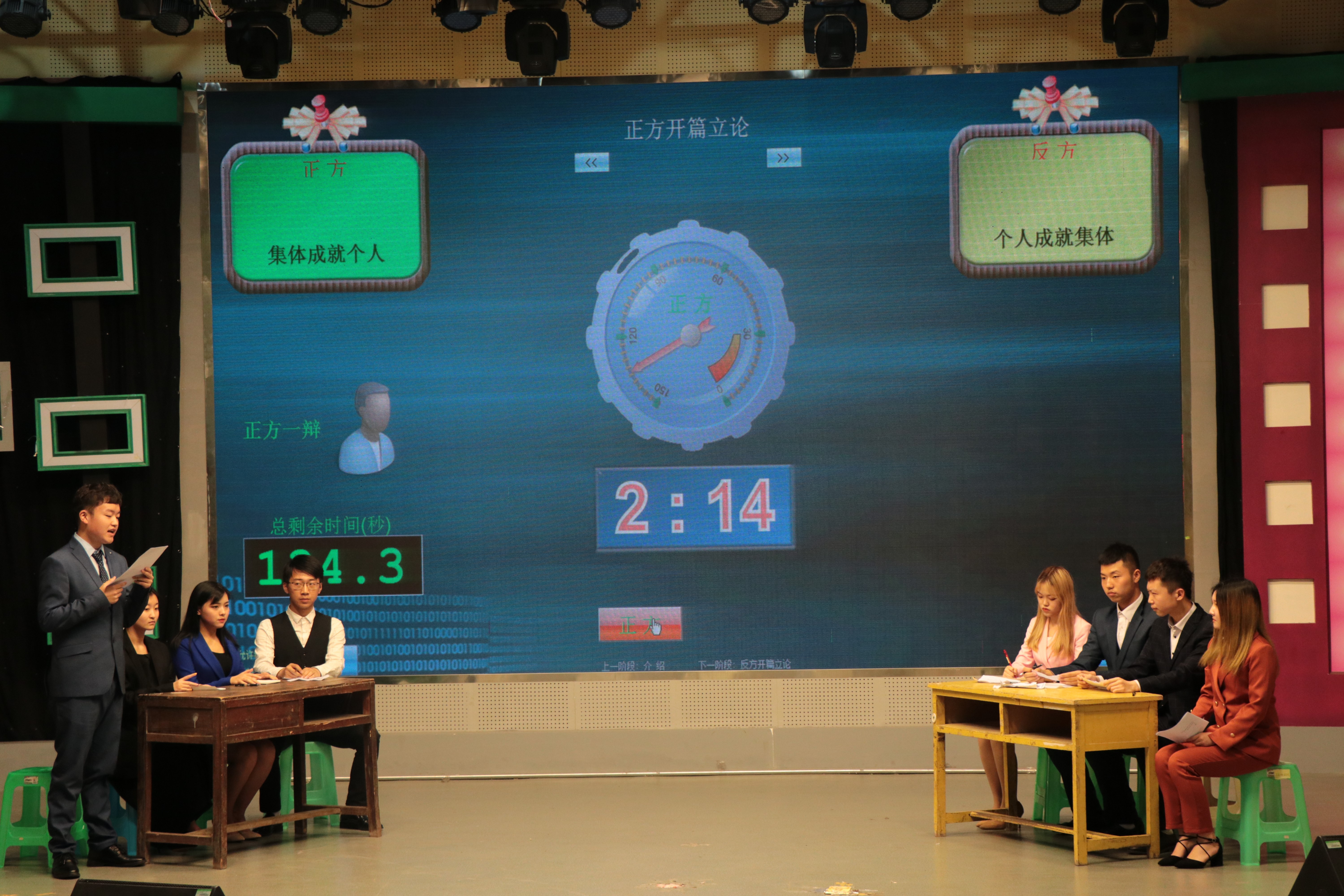 第三项表演为精彩激烈的辩论赛,本次辩论赛共两组。第一组同学以“老员工积累知识更重要还是塑造人格更重要”为辩论题目,第二组同学以“集体成就个人还是个人成就集体”为辩论题目,两组同学从自身辩题与生活经历的角度展开辩论。比赛过程中,两组同学做了充分准备,并且遵守比赛规则,积极提问、踊跃发言。在最精彩的自由辩论环节中,现场气氛迅速升温,整个赛程高潮不断,掌声此起彼伏。