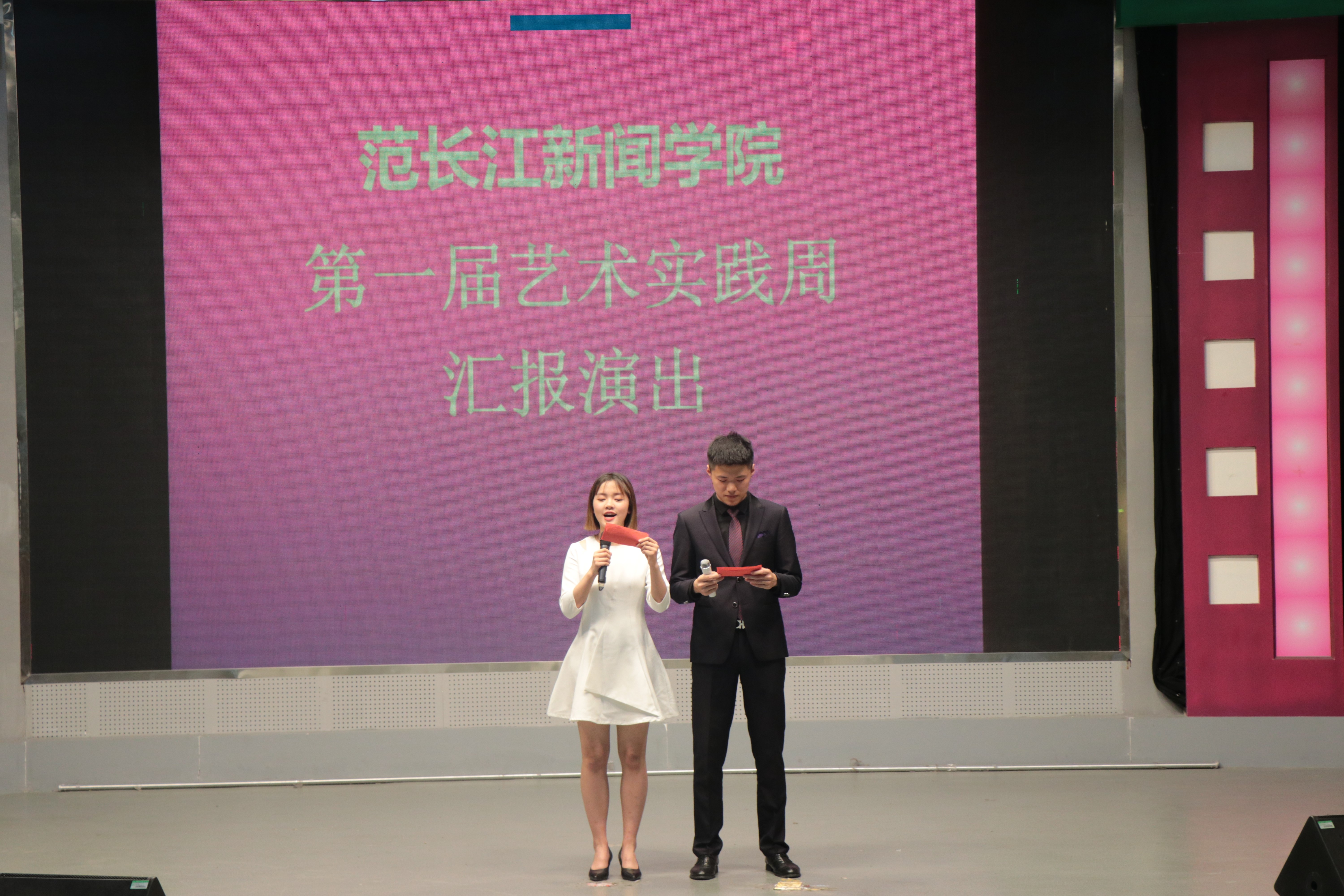 公司为期五天的艺术实践活动正式于昨日落下帷幕,5月10日下午2点30分,艺术实践周汇报表演暨闭幕仪式在第三实验大楼129演播厅举行。公司书记魏伟、各专业老师以及播音与主持艺术专业全体同学参加此次活动。