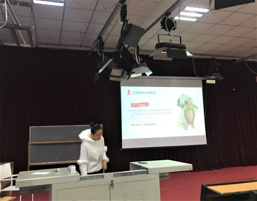 伊始,通过预防艾滋的PPT展示,同学们从了解艾滋病的概念、艾滋病的传播途径、艾滋病的症状详情和艾滋病的教育及预防方法使同学们系统性地了解了艾滋病知识,也了解到如何保护自己及如何跟艾滋病人正确相处。