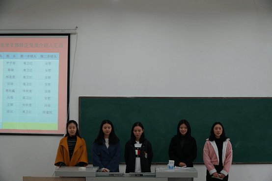 会议伊始,员工党支部书记宋秋莹、刘丽娜分发预备党员资料袋和成绩单并介绍大会议程。这次会议主要有五项议程:一是预备党员汇报预备期间的思想、工作情况;二是入党介绍人介绍该同志在预备期间的表现情况和表明意见;三是支部委员会介绍该同志预备期间的教育考察情况;四是与会党员发表意见,对该同志能否转正进行充分讨论;五是无记名投票表决。18名预备党员依次汇报本人情况。入党介绍人也对预备党员进行在校情况汇报。通过支委会审查,与会党员进行无记名投票。经过两名计票人统计,两名监票人监督,最终结果为全票通过预备党员刘怡、王娜等16名同志按期转正,2名同志延长预备期半年。会议最后,员工党支部书记宋秋莹、刘丽娜带领党员重温入党誓词。