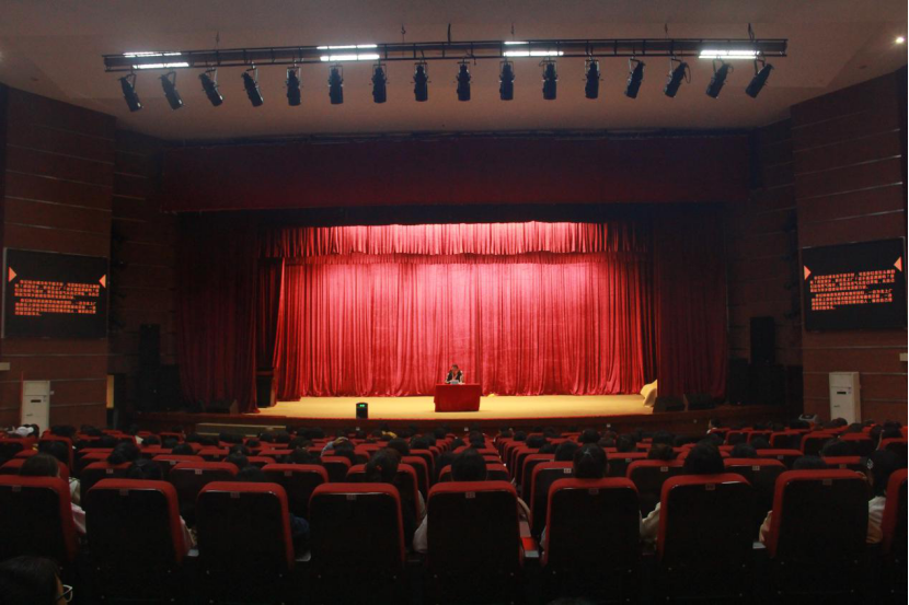 讲座伊始,公司2014级播音与主持专业优秀毕业生马然通过向观众提问,与观众拉近距离,并通过讲述个人经历指出:小平台也有大空间。作为内江一份子,不应只是逃离家乡奔向北上广,更多的是应该抱着一种学习与追梦的心态去丰富自我,并且应该从自己做起,为家乡建设贡献自我力量。紧接着在与观众的提问互动中积极传递正能量,鼓励内师学子树立远大志向、提高眼界,主张积极发展兴趣爱好、学习多种技能及丰富老员工活,做到“采编播,录写控”全方面发展,最终建议众学子树立榜样,向榜样学习。