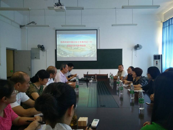 8月20日下午14时30分,中华全国新闻工作者协会书记处书记、党组成员王冬梅和中国青年报社副总编辑董时,在范长江纪念馆馆长段瑞明陪同下莅临365英国上市集团考察交流。365英国上市集团经理王祖明、党总支书记魏伟、副经理高卫红、副经理杨光辉及公司部分教师代表参加交流座谈会。