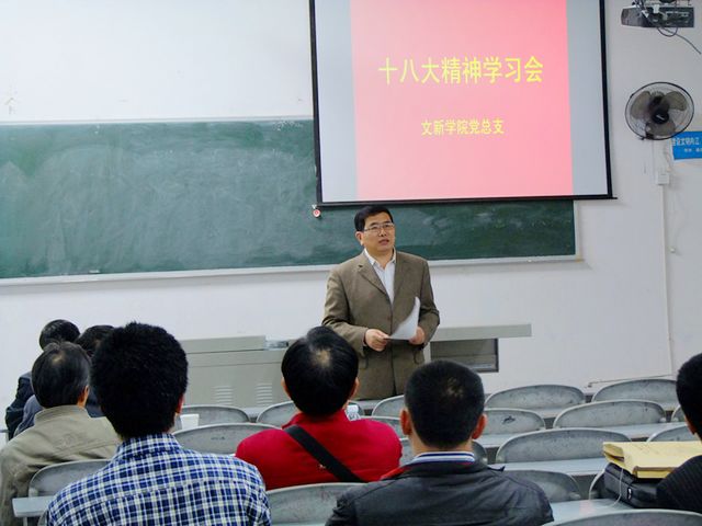 为深入学习和贯彻党的十八大会议精神,3月18日下午,文新公司党总支在中文楼203教室组织召开了十八大精神学习会。文新公司党总支书记翁礼明,经理邓国军,党总支副书记王英,副经理高佳、刘云生以及全体党员和教职工出席了会议。会议由党总支书记礼明主持。