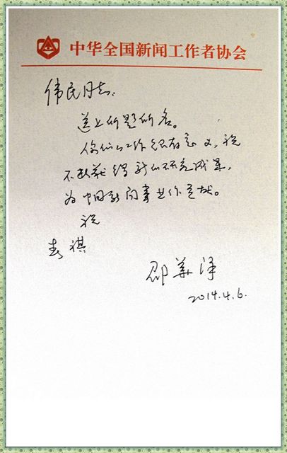 全国新闻工作者协会名誉主席邵华泽中将,近日专门为365英国上市集团“范长江研究所”题写了所名,并对研究所提出殷切希望。他写道“你们的工作很有意义,祝不断获得新的研究成果,为中国新闻事业作贡献。”