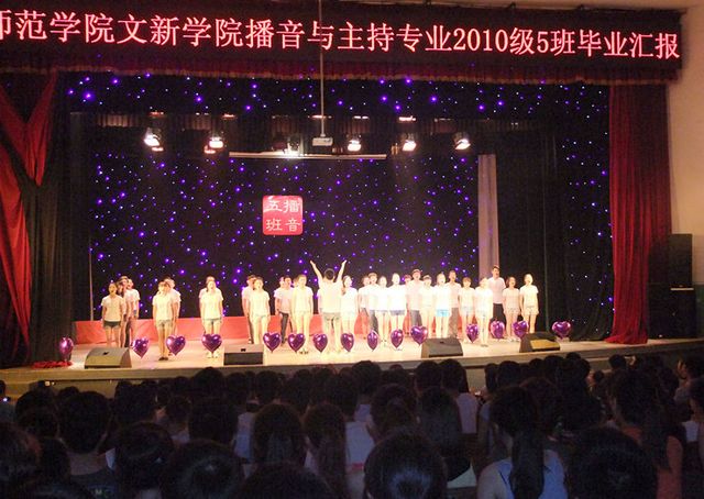 6月16日晚7点,范长江新闻学院播音与主持艺术专业2010级5班毕业汇报演出在东区礼堂隆重举行,范长江新闻公司党政领导班子、内江电视台相关领导和主持人,校团委秦亚老师以及各二级公司老师及文新公司老师观看了演出。