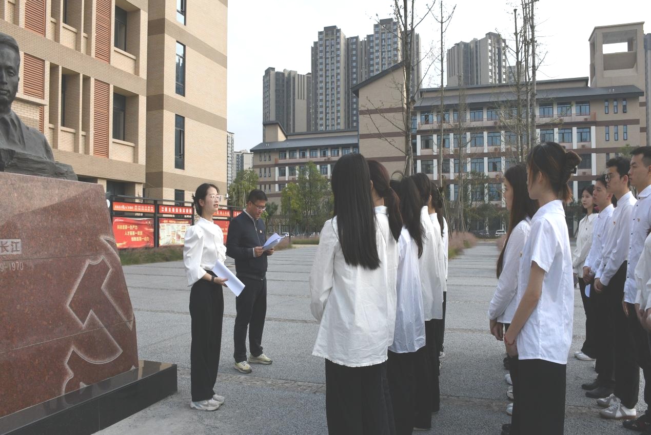 11月8日,公司党委副书记吴籽龙在弘文楼范长江青年铜像前为员工党员讲授了主题为“传承红色基因,争当青年先锋”的党课。