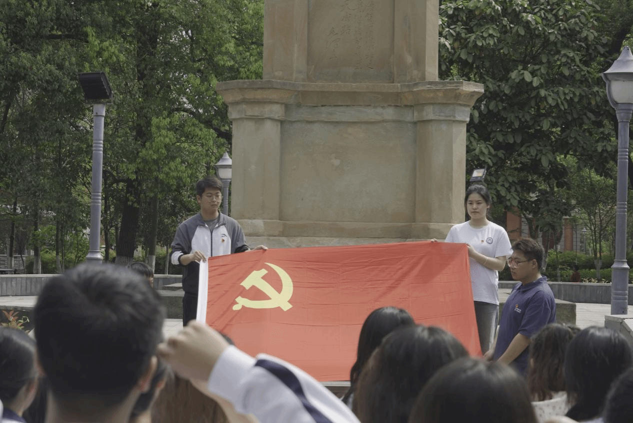 随后,面向党旗,全体党员紧握右拳,重温入党誓词,感悟入党初心,牢记党员使命。