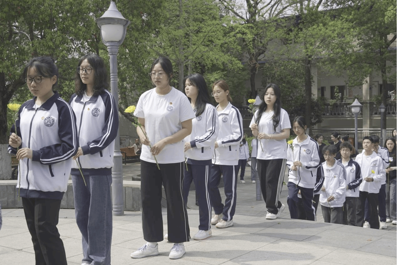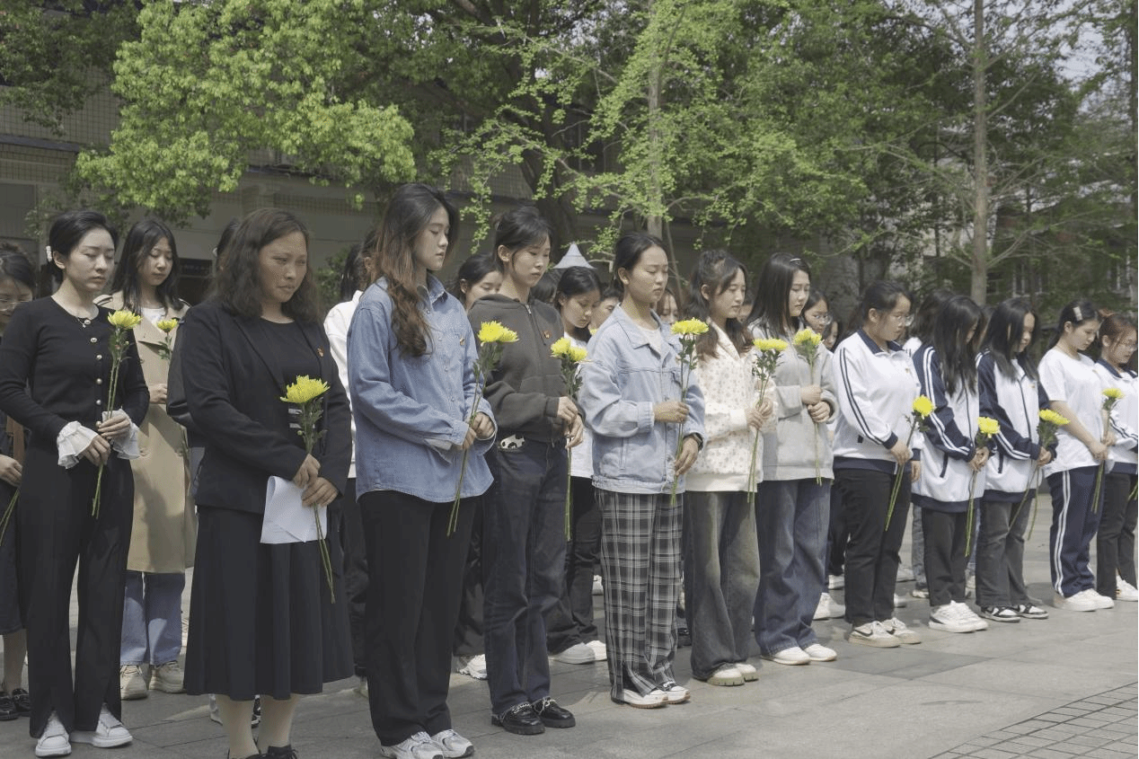 清明祭英烈活动在默哀中拉开序幕。全体师生党员排列整齐、佩戴党徽,在纪念碑下鞠躬、默哀悼念,并献上鲜花,深切缅怀筑路民工英雄们的丰功伟绩。